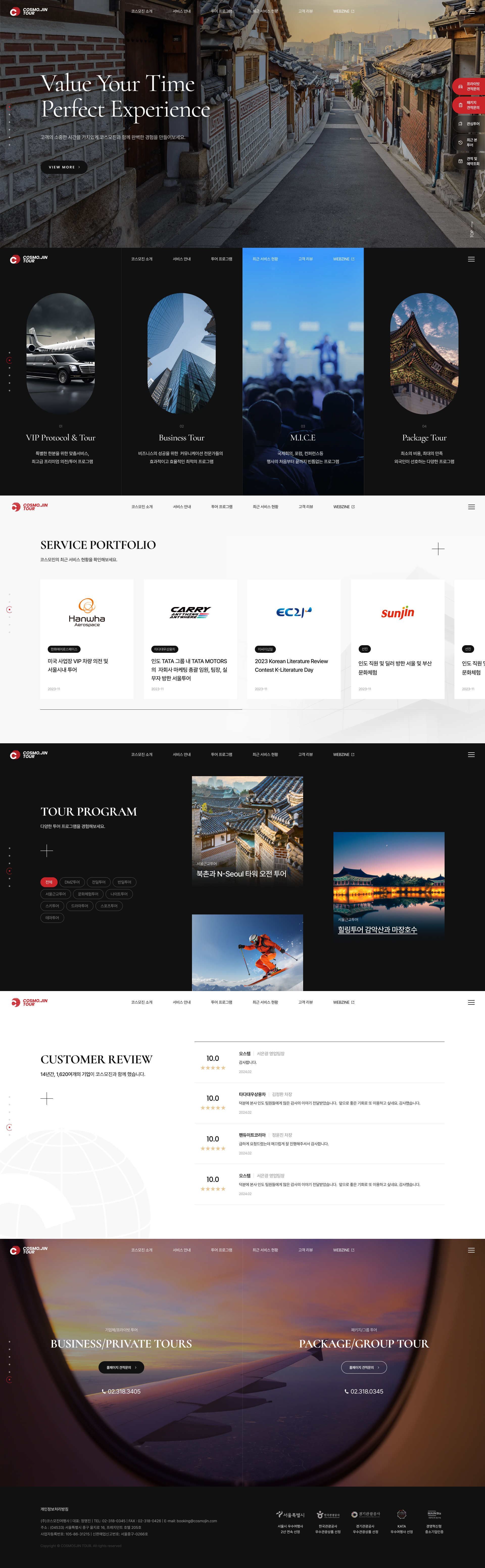 코스모진의 레드컬러와 블랙의 조화를 통해 세련되고 강렬한 이미지를 강조하며, 세리프체를 사용하여 코스모진만의 고급스럽고 전문적인 느낌을 전달하여 신뢰성을 부각시킵니다.