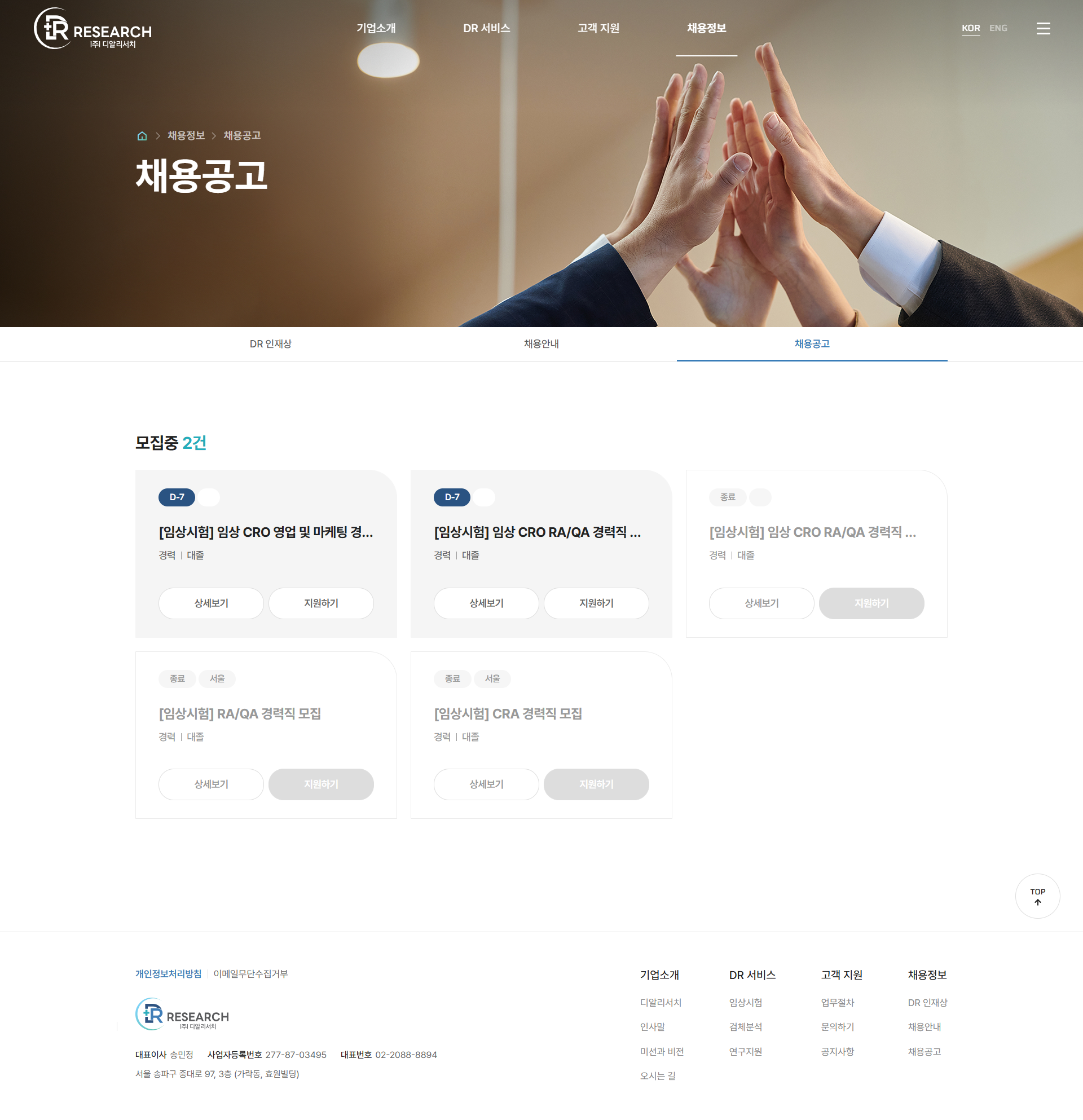 디알리서치 문의·채용 중심 기업 플랫폼 구축