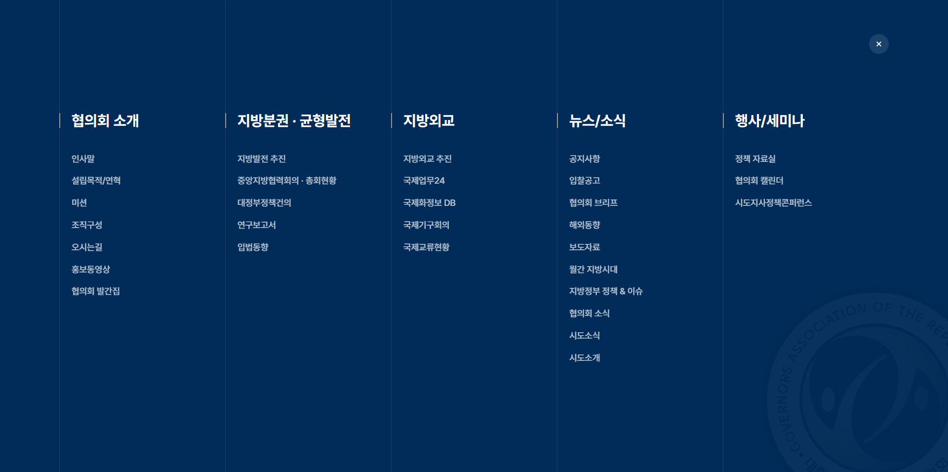 협의회 소개·지방분권·지방외교·뉴스·행사의 5대 영역으로 메뉴를 재설계하고, KOR·ENG·CHN·JPN 4개 국어와 글자 크기 조절 기능을 탑재한 반응형 웹을 구현하여 국내외 다양한 사용자가 어떤 디바이스에서도 동일한 수준의 정보 접근성을 경험할 수 있도록 하였습니다. -