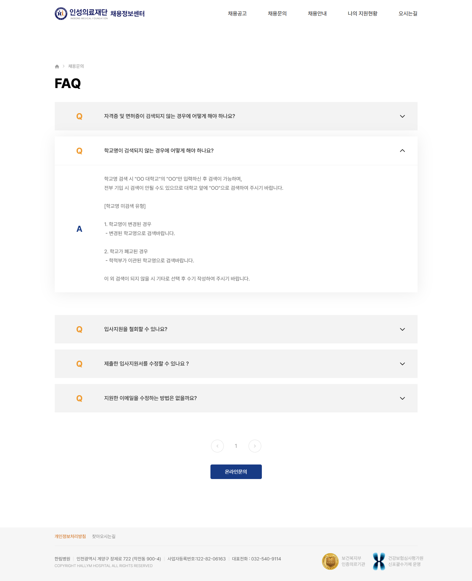 채용문의 FAQ·온라인 문의로 반복 문의 감소