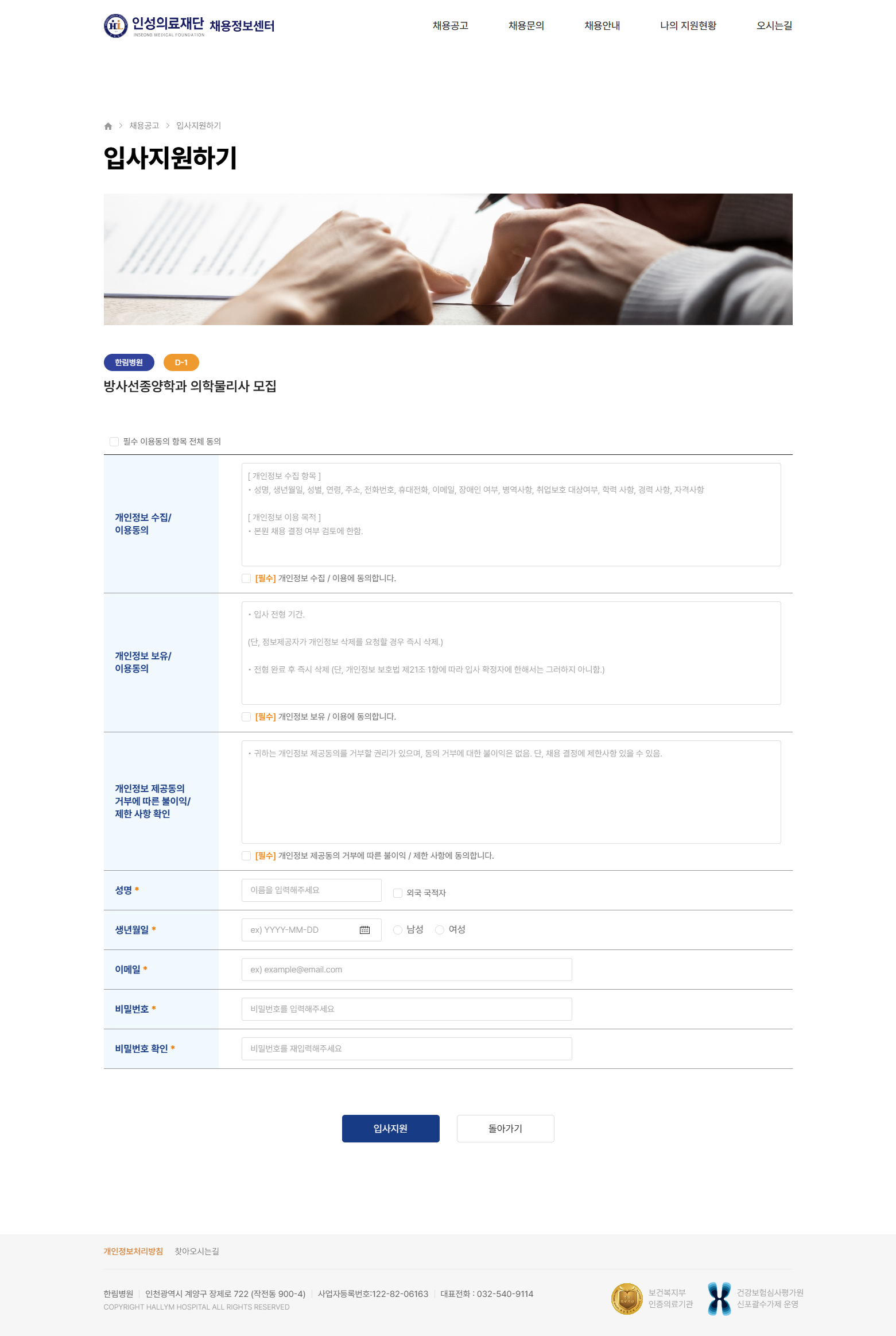 인성의료재단 병원 채용공고·지원접수·합격확인 통합 채용정보센터