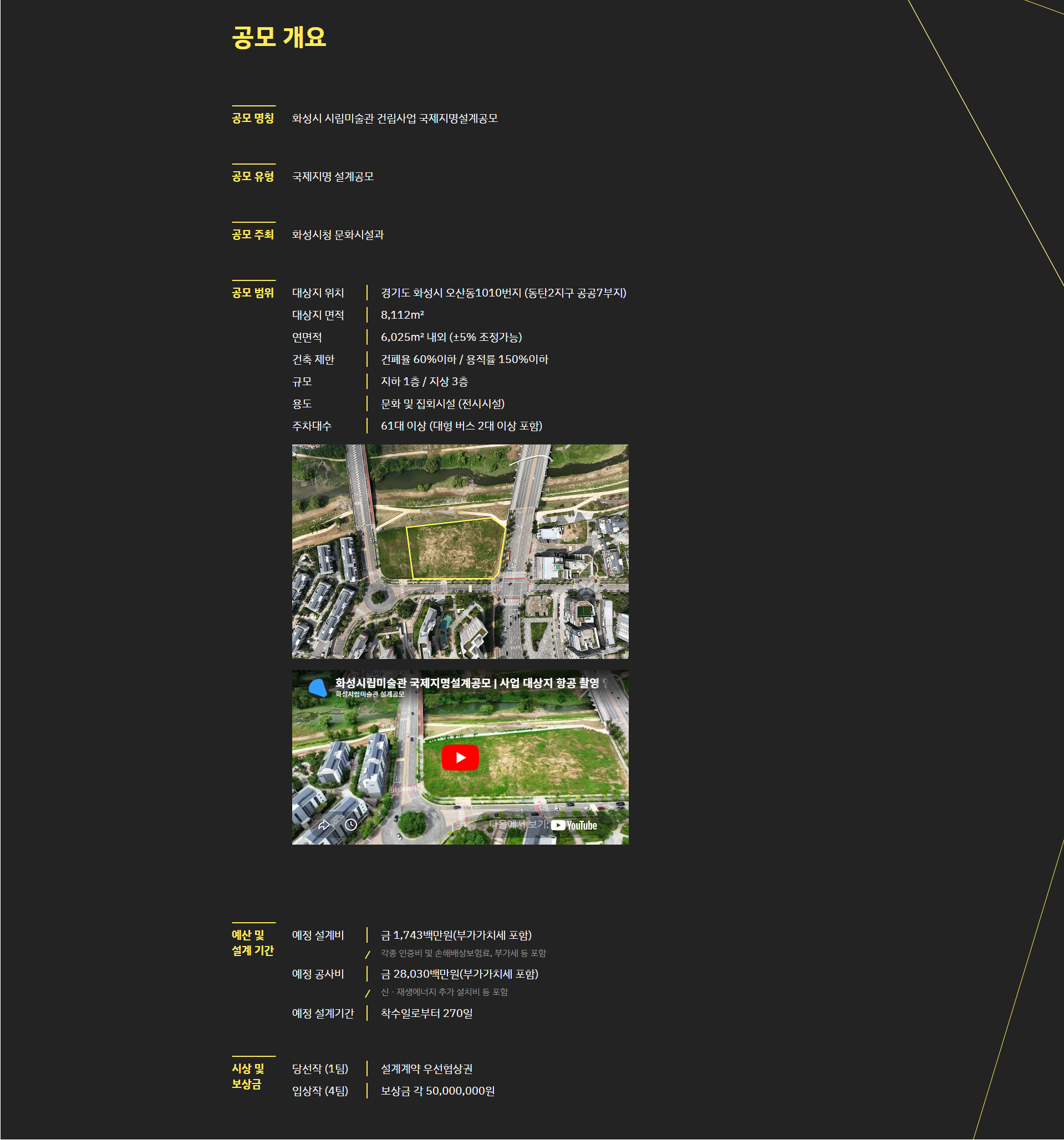 화성시립미술관 국제지명 설계공모 정보를 한곳에서 제공하는 공모 전용 플랫폼