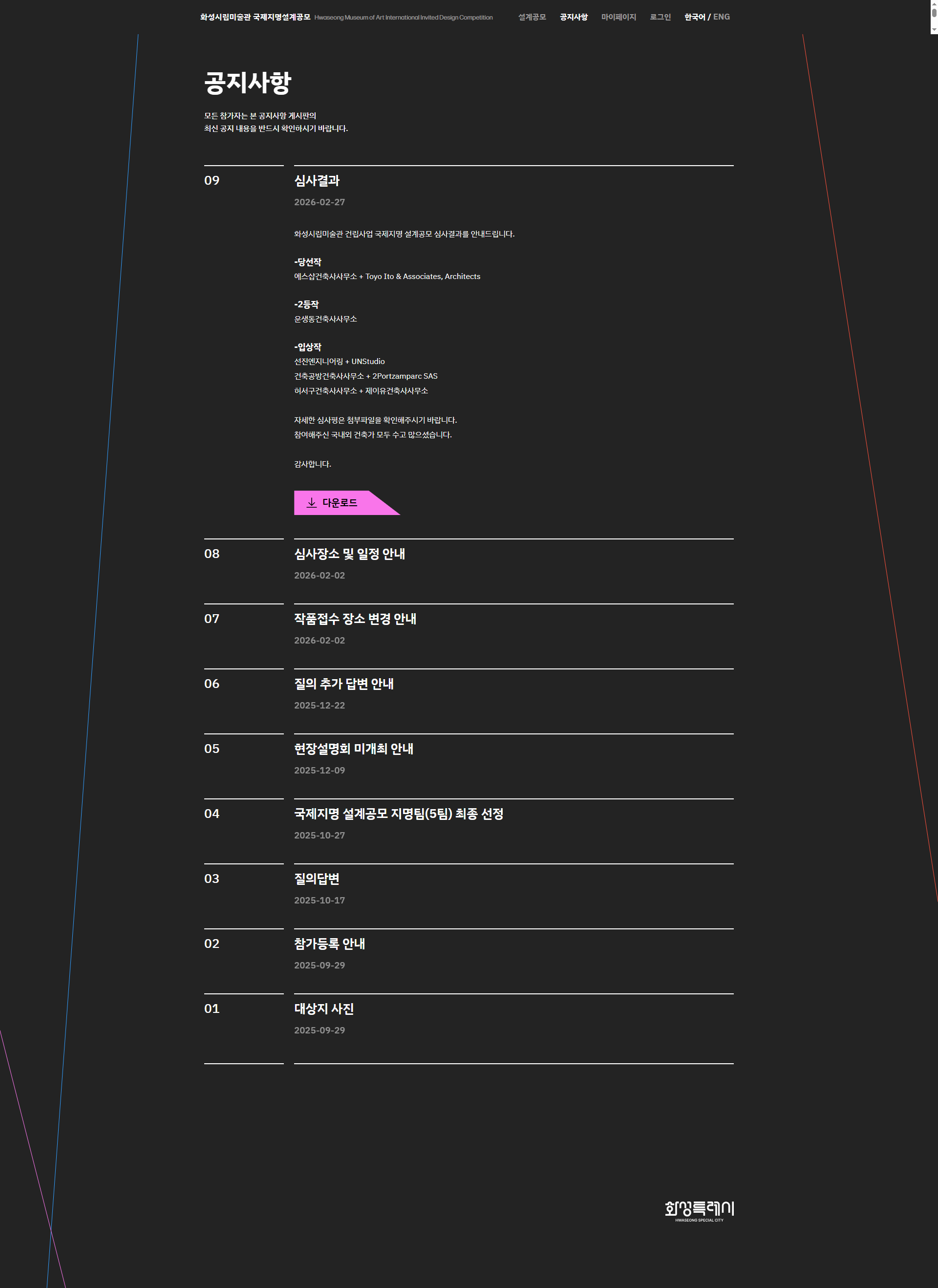 화성시립미술관 건립을 위한 국제지명 설계공모 전용 운영 홈페이지 구축