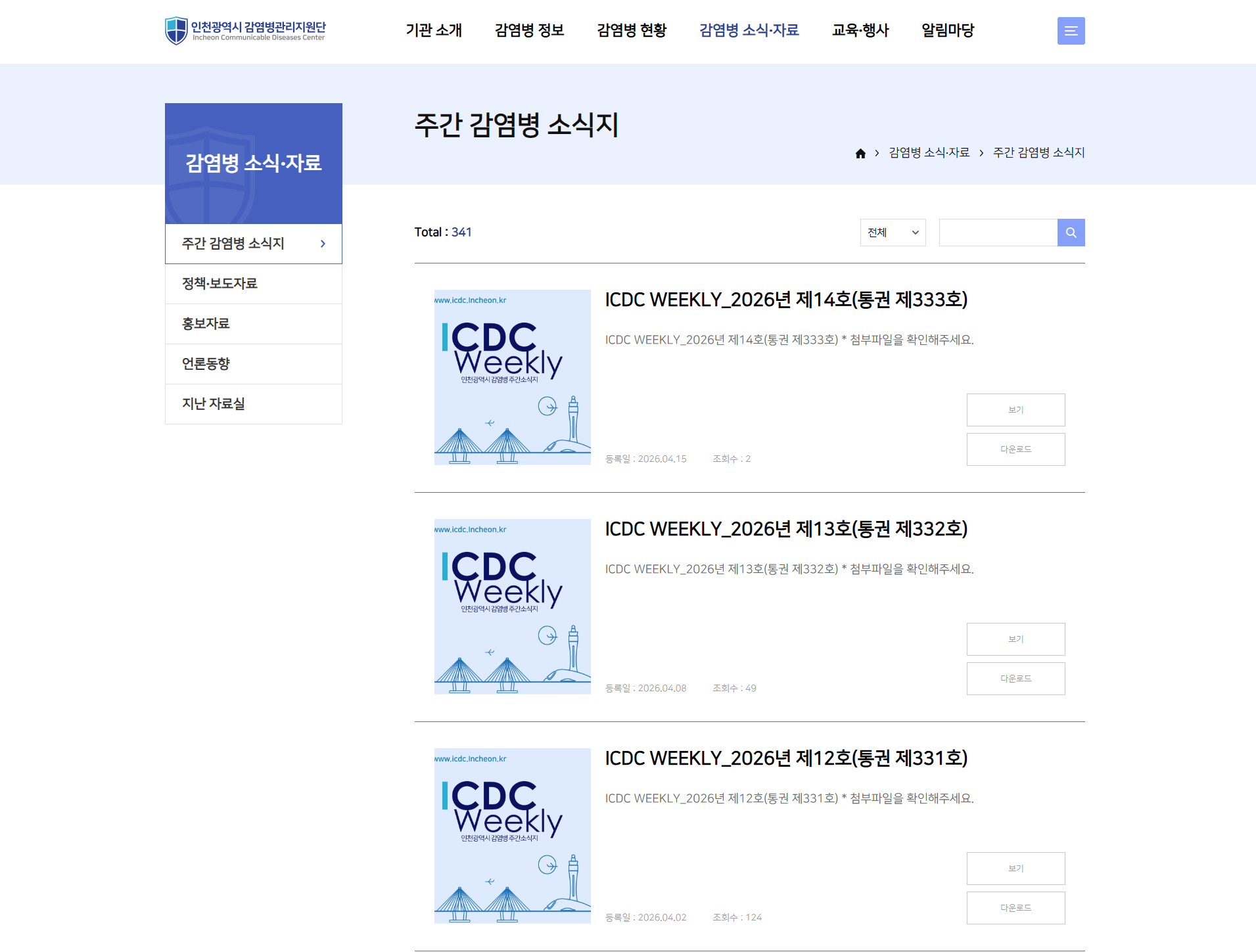 주간 감염병 소식지(ICDC WEEKLY) 및 홍보자료 아카이브 통합