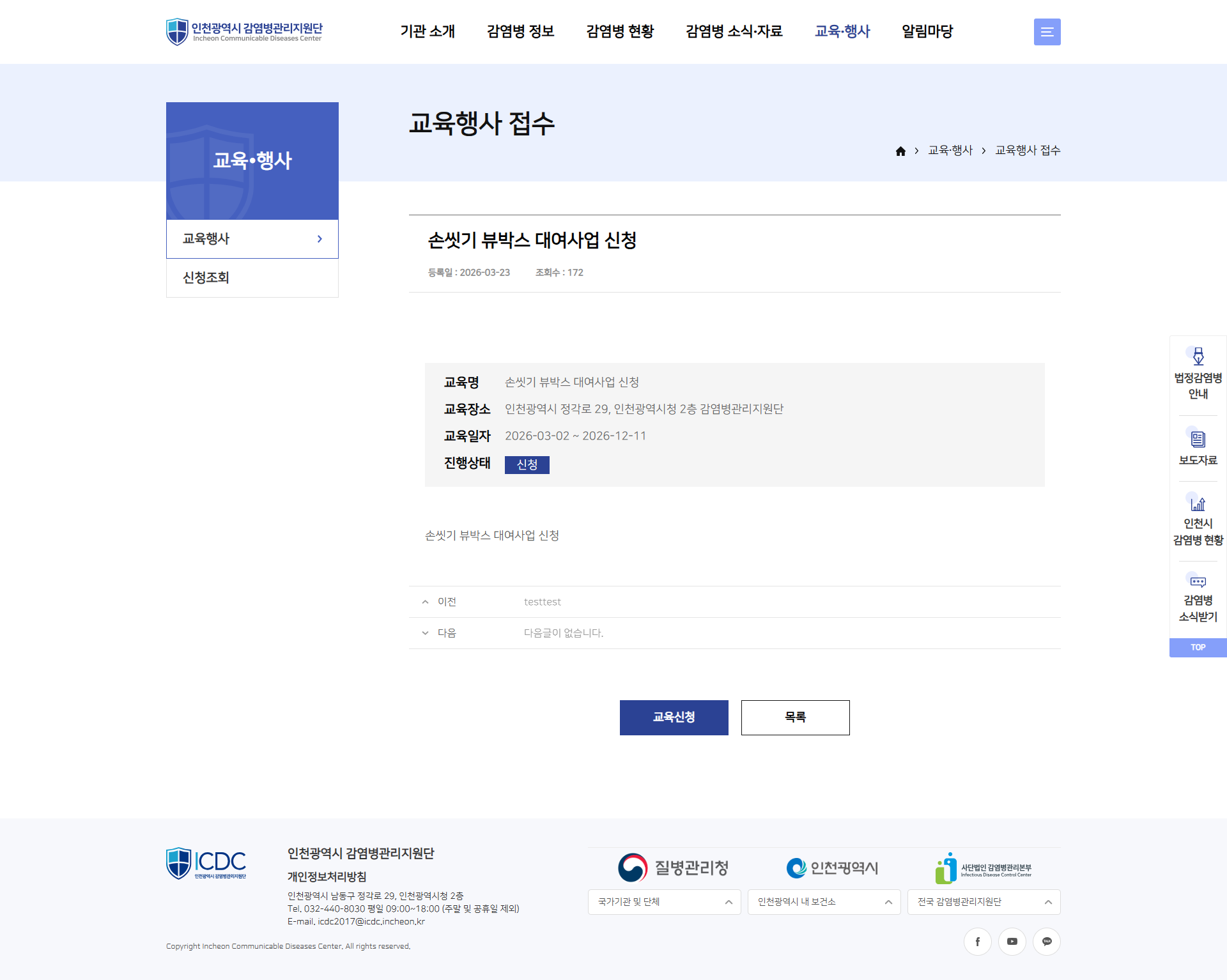 교육행사 온라인 신청·조회 및 생애주기별 감염병 정보 제공