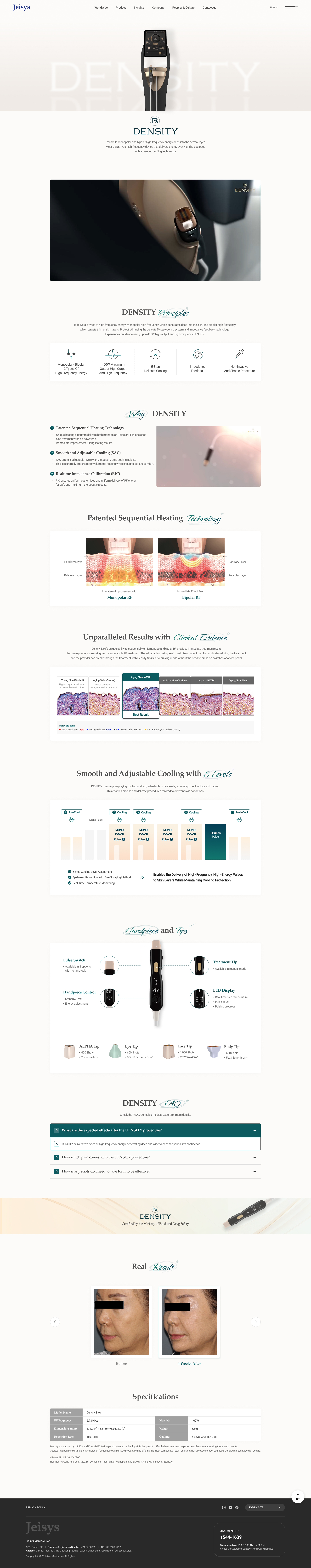 8개 브랜드(DENSITY, POTENZA, LinearZ, LinearFirm, cellec v, TRI-BEAM K 2.0, Edge ONE 2.0, D'Liv)를 효과적으로 관리하기 위해 메인 포탈에서 각 브랜드를 명확히 분류하고, 각 브랜드별 독립 웹사이트를 구축하여 의료기관과 소비자가 각자의 니즈에 맞는 정보에 접근 가능하도록 설계했습니다.
