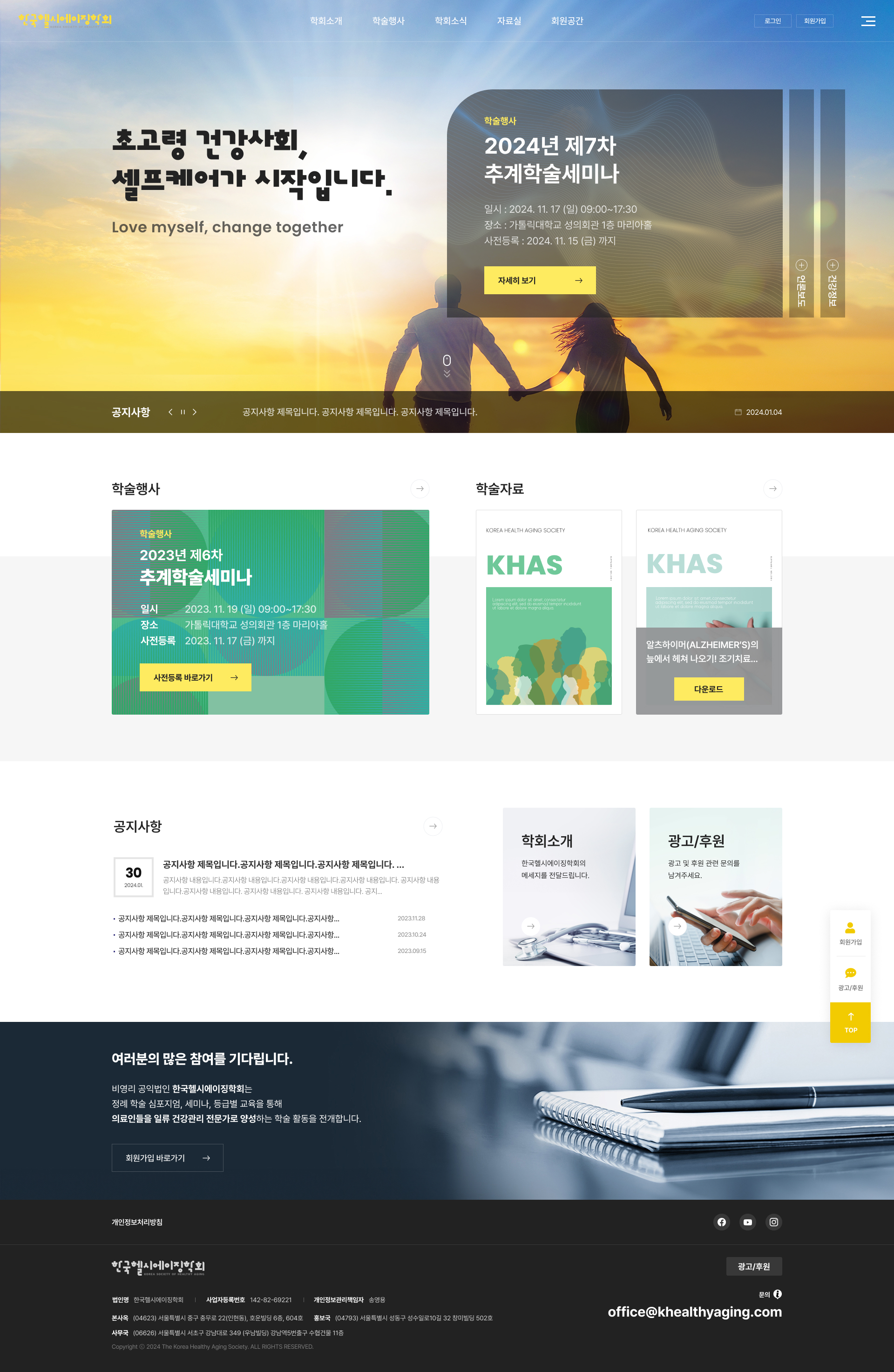 노란색 포인트 컬러로 따뜻한 느낌을 주며, 정보 공유에 중점을 둔 직관적인 디자인으로 구성되어 있습니다. 사용자가 쉽게 건강 정보를 찾고 접근할 수 있도록 돕습니다.