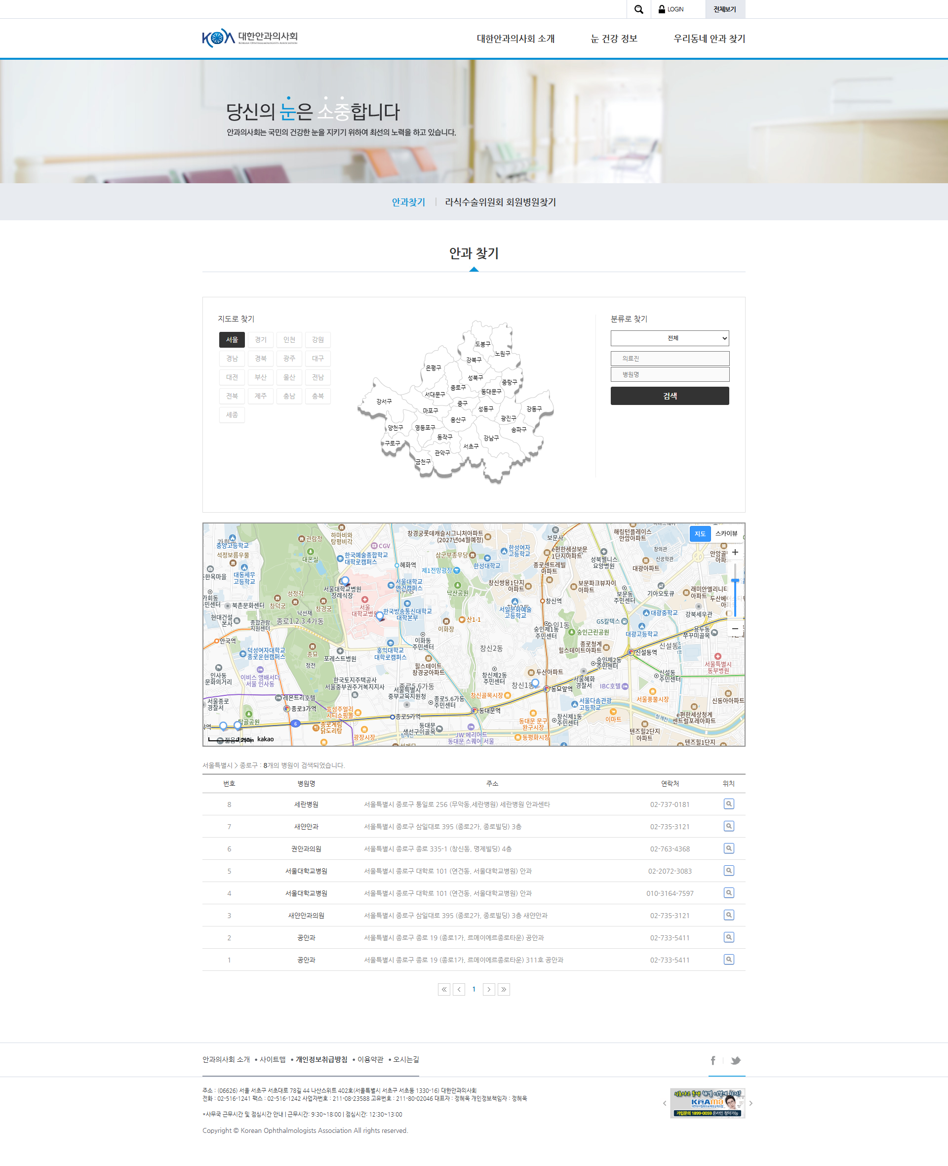전국 안과 찾기·라식 인증병원 검색과 눈 건강 정보를 통합한 안과의사 협회 홈페이지 구축