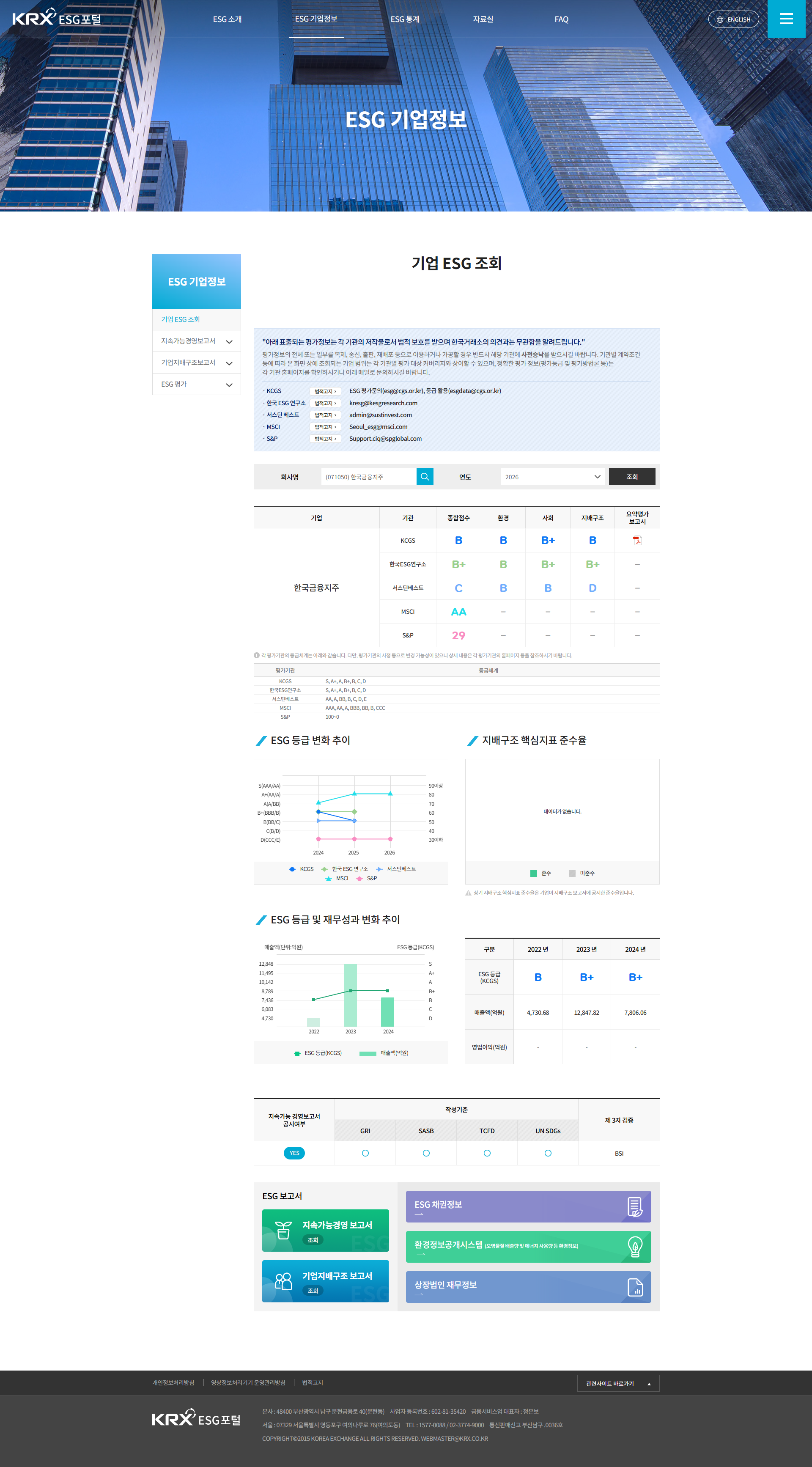 상장기업 ESG 보고서·평가·지수를 원스톱으로 조회하는 한국거래소 공식 ESG 정보 포털