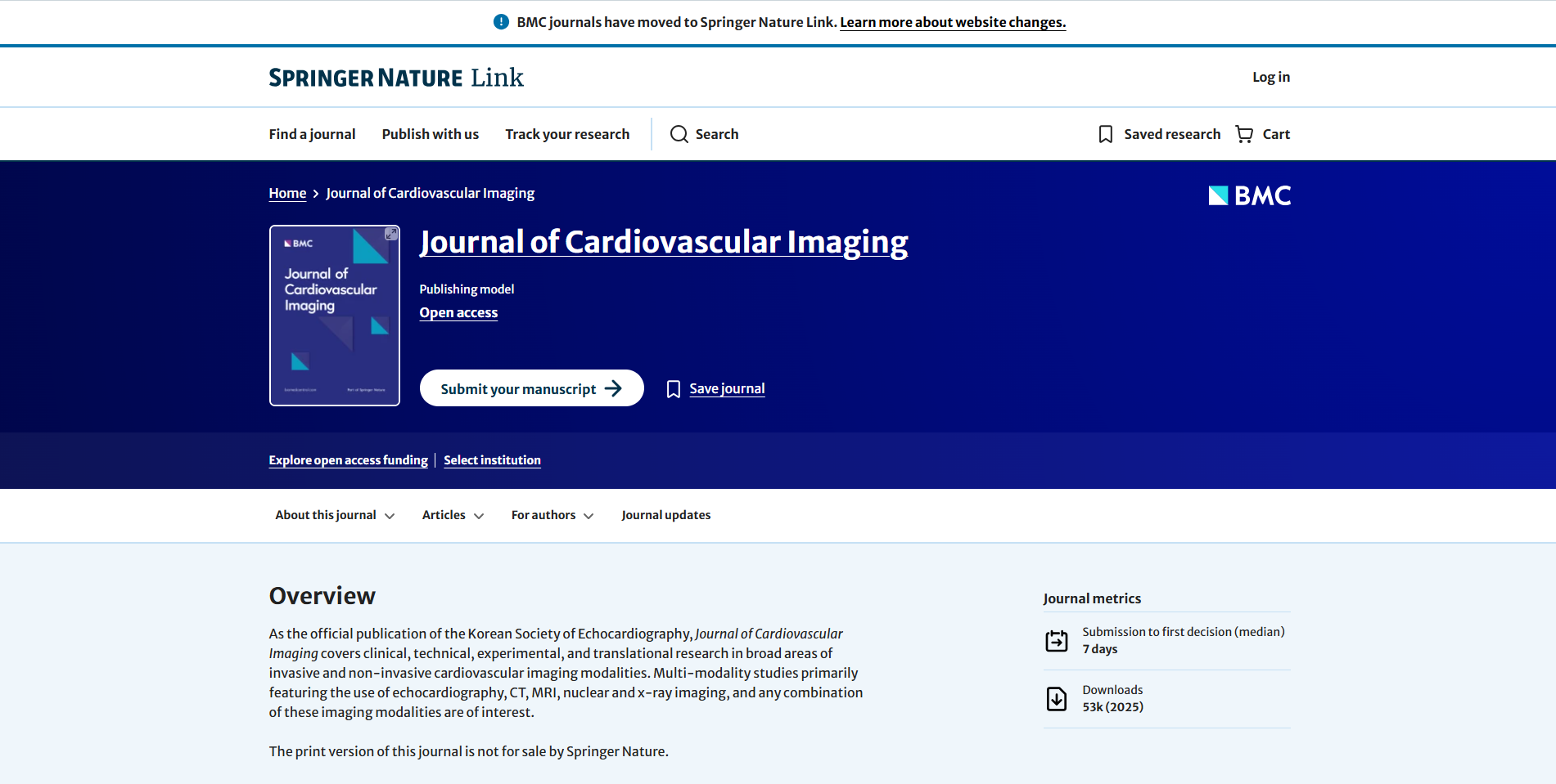 Springer 연동 국제학술지 Journal of Cardiovascular Imaging(JCVI)의 논문 투고 절차와 가이드라인이 외부 플랫폼에만 존재하여 학회 홈페이지에서 바로 투고 접근이 어렵고, 신진 연구자가 투고 요건을 파악하기 위해 여러 사이트를 오가야 하는 불편이 있었습니다.