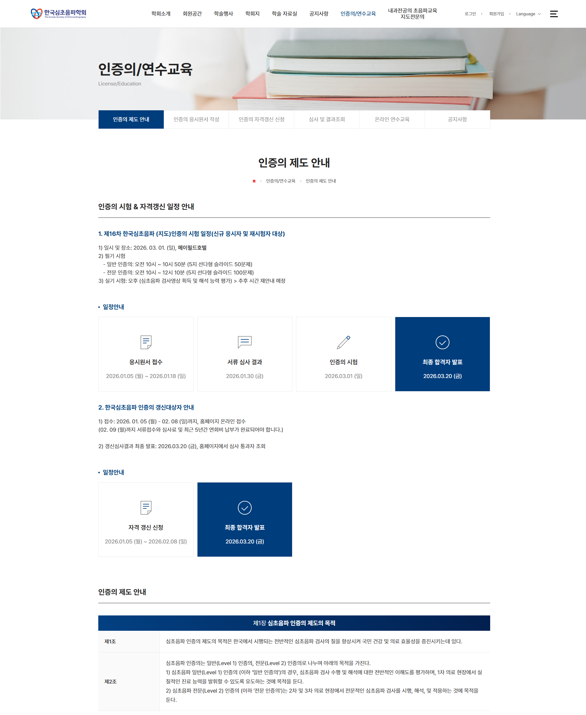 인증의 응시원서·자격갱신·심사결과 조회, 학술행사·해외학회 참가신청을 통합한 한국심초음파학회 종합 학술 포탈 구축