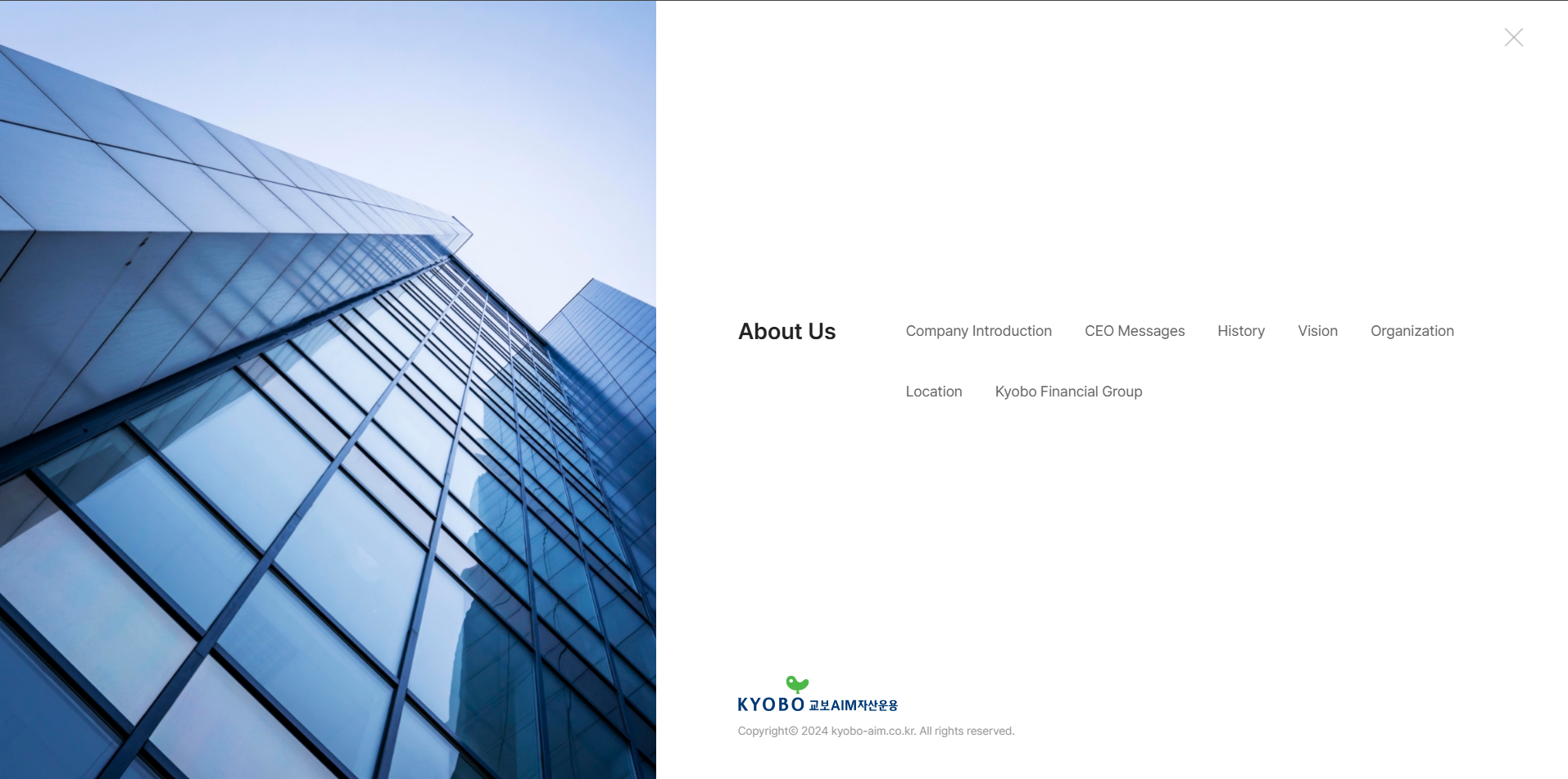해외 기관투자자 및 외국계 파트너와의 거래가 있는 자산운용사 특성상 영문 홈페이지가 필요하였고, 교보금융그룹 계열사로서의 브랜드 신뢰도를 해외 파트너에게 전달할 수 있는 구조가 요구되었습니다.