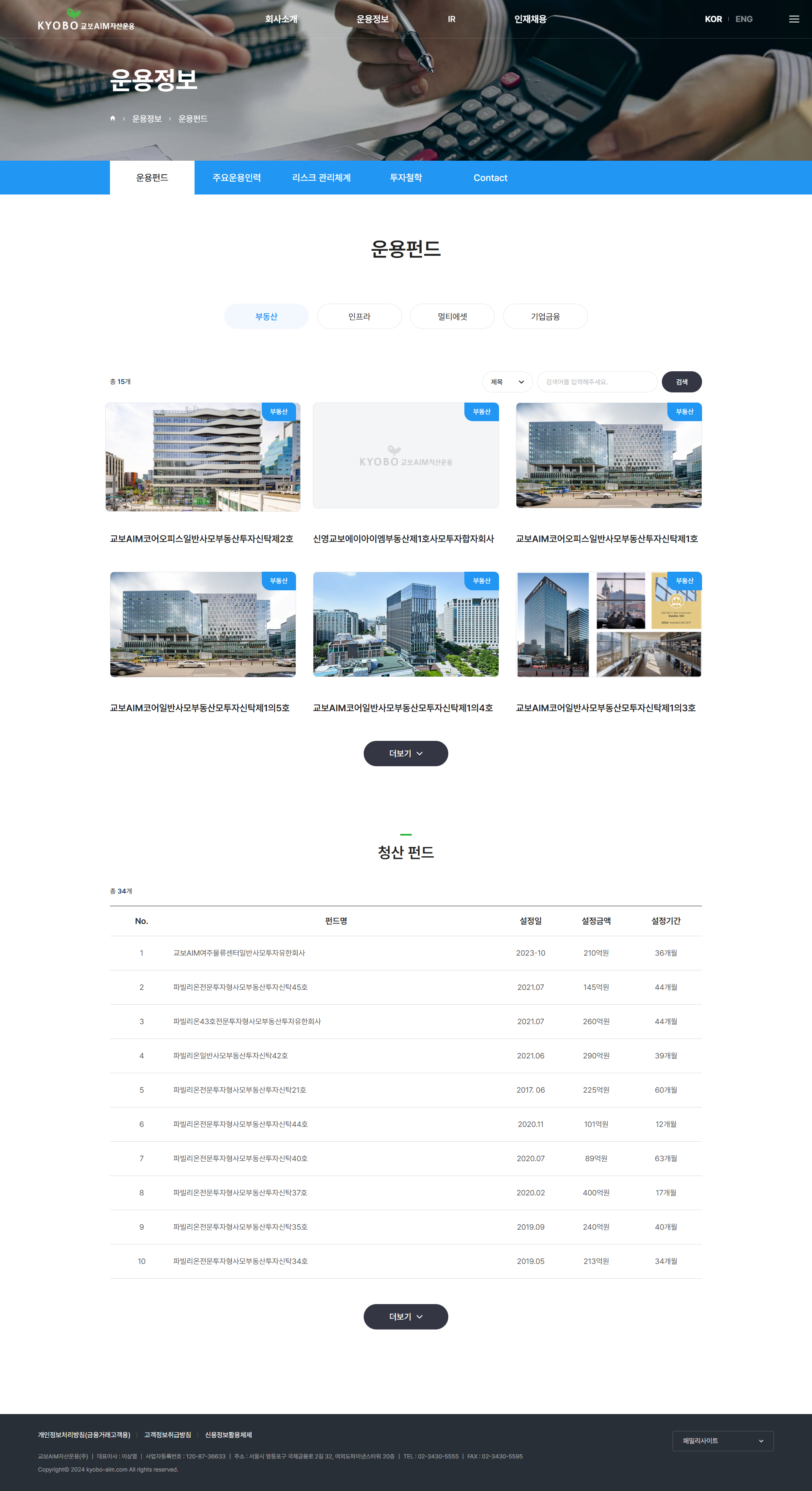 부동산·인프라·멀티에셋·기업금융 카테고리 운용펀드·공시·IR을 통합한 교보금융그룹 대체투자 전문 자산운용사 홈페이지 구축