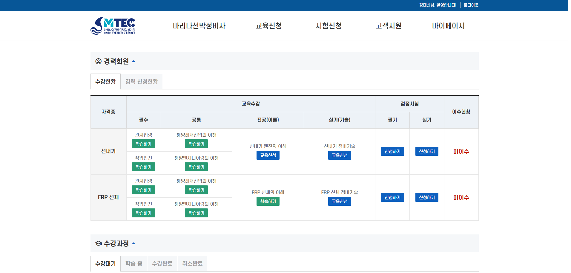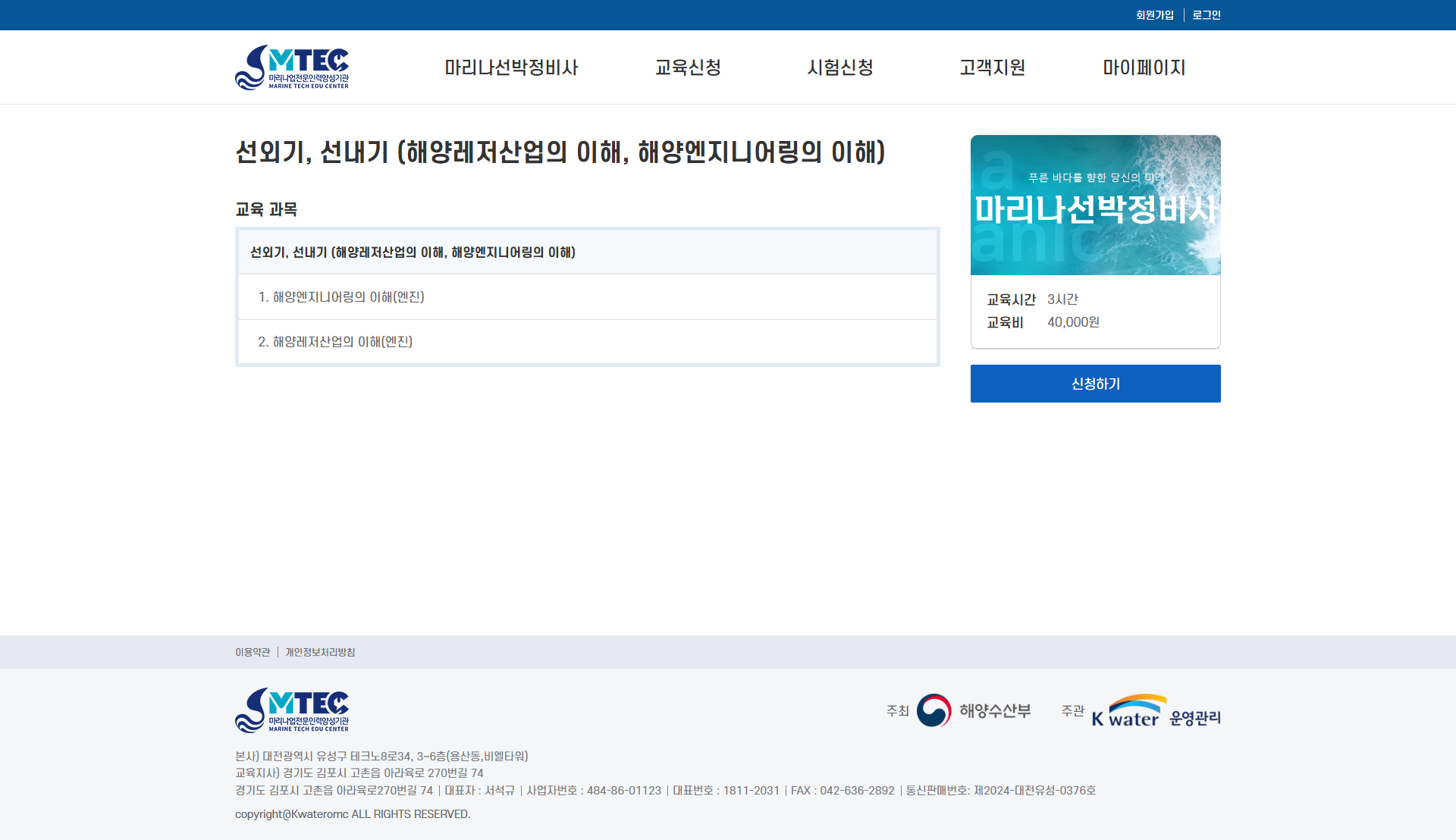 마리나선박정비사 자격교육 및 시험 신청을 위한 통합 온라인 플랫폼 구축