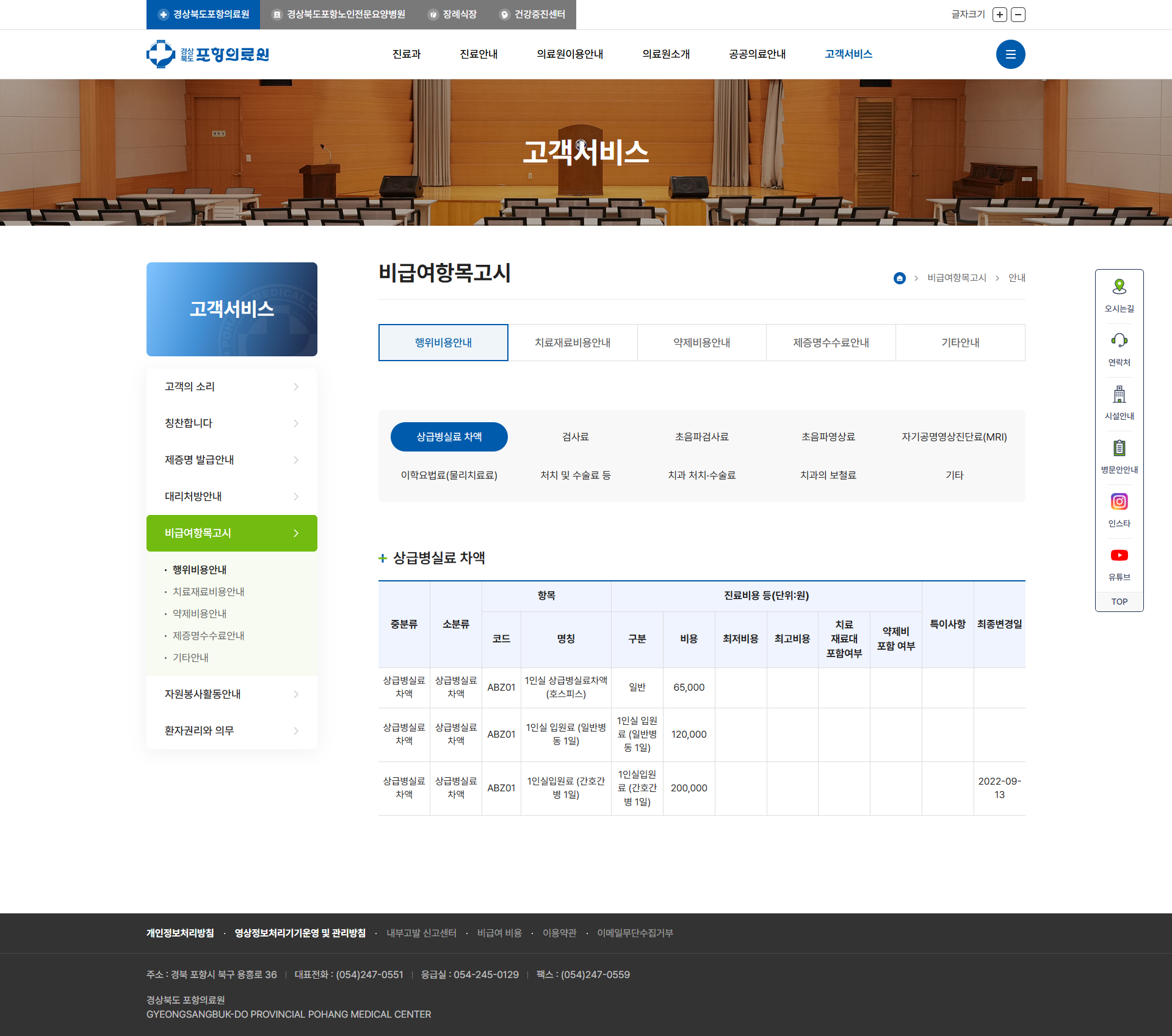 외래·응급·호스피스 진료안내 + 비급여비용 공개