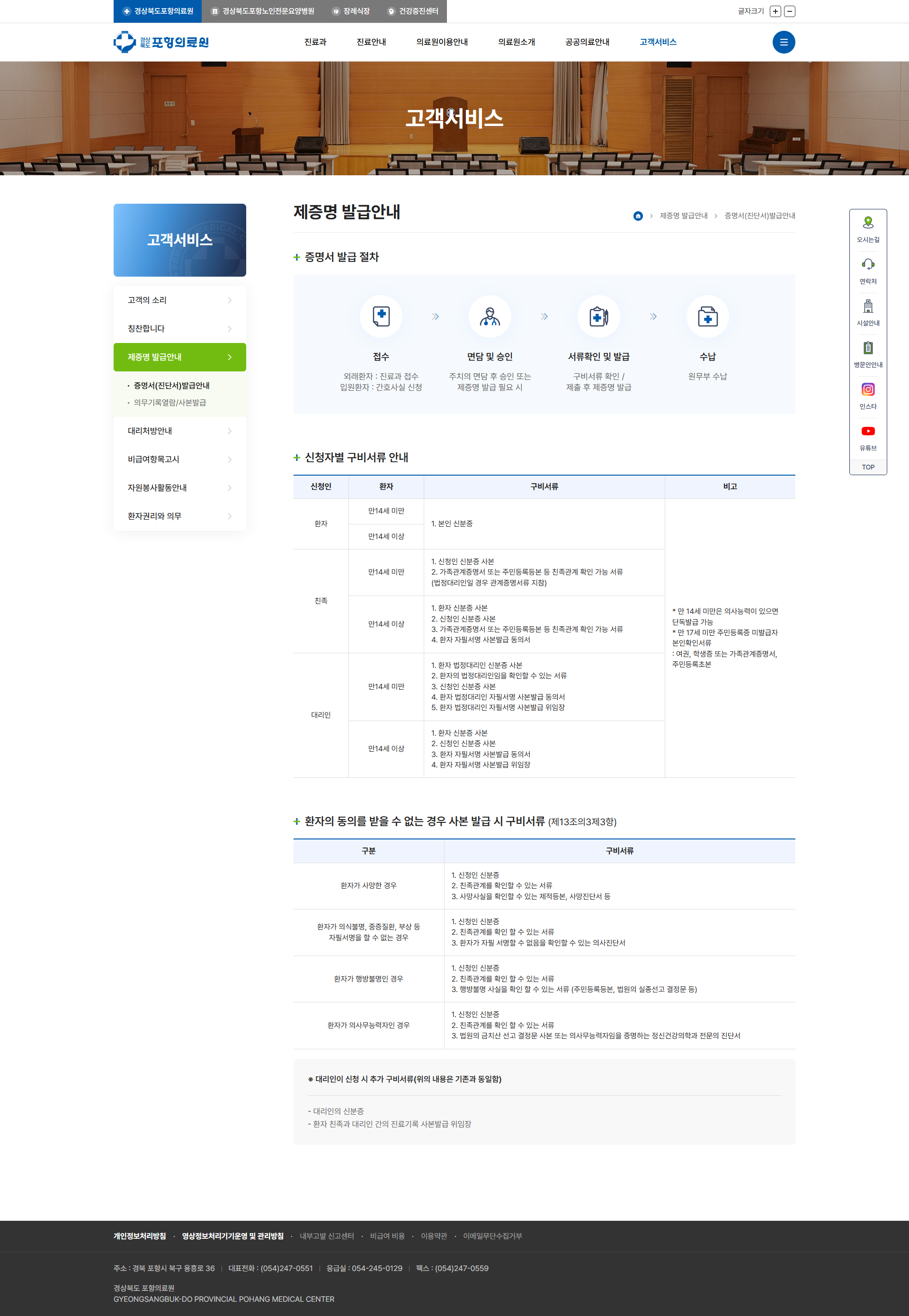 증명서 발급·의무기록사본 발급 자주찾는 메뉴 온라인 안내