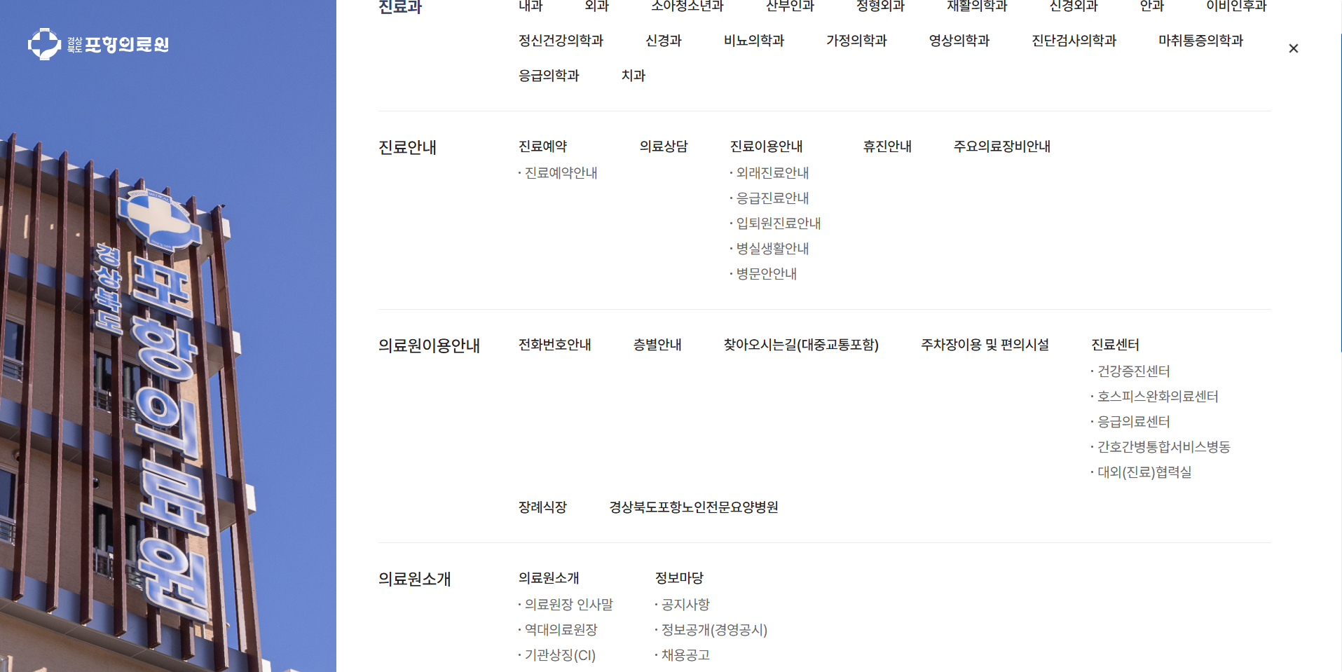 4개 시설 통합 경상북도포항의료원 공공의료기관 홈페이지