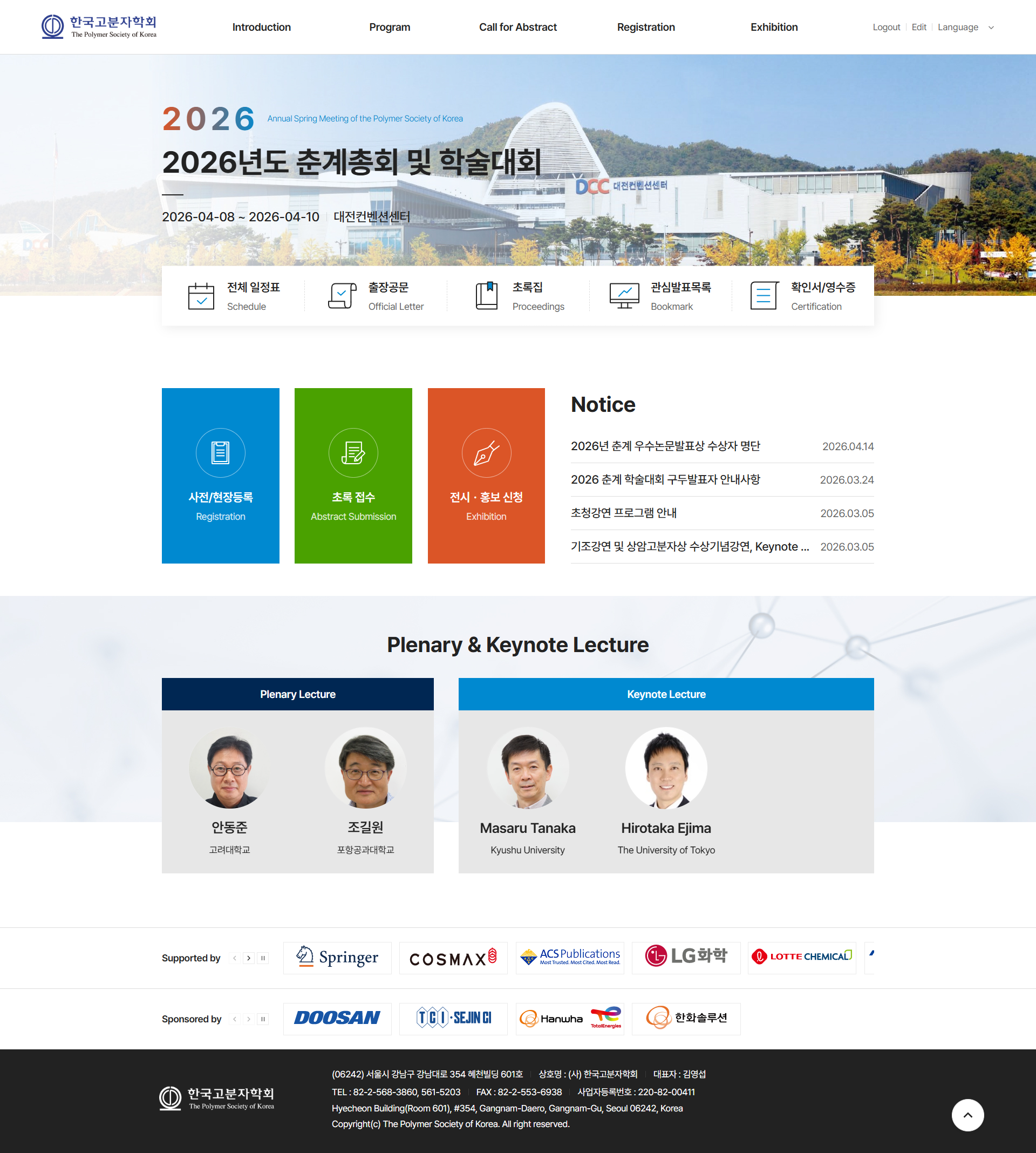 회원 서비스·학술활동·발간물을 통합한 고분자 학술단체 홈페이지 구축