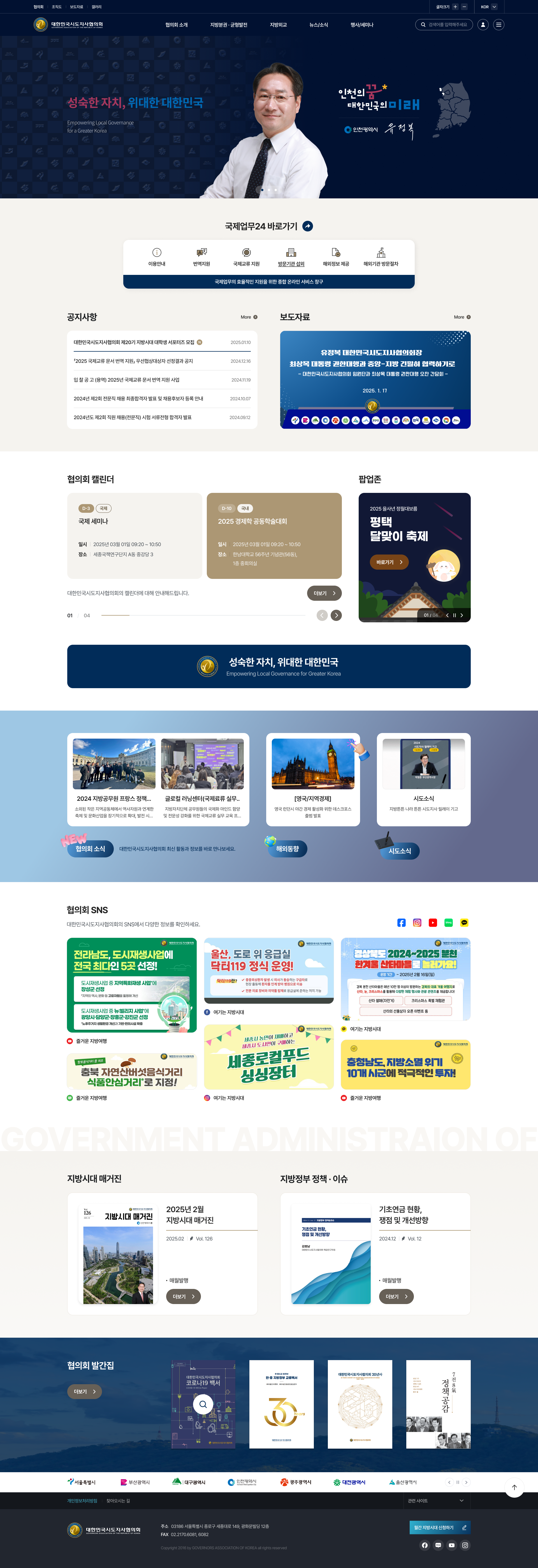 SNS 연동과 발간자료 영역을 통해 확장성과 정보 전달력을 강화했습니다.