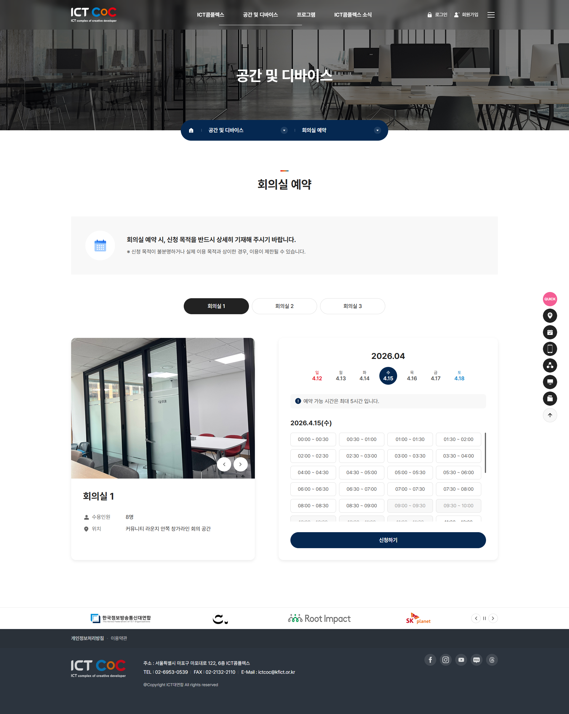 회의실·디바이스 예약과 창업·취업연계 프로그램 신청을 통합한 ICT 창업 복합공간 운영 포털 구축