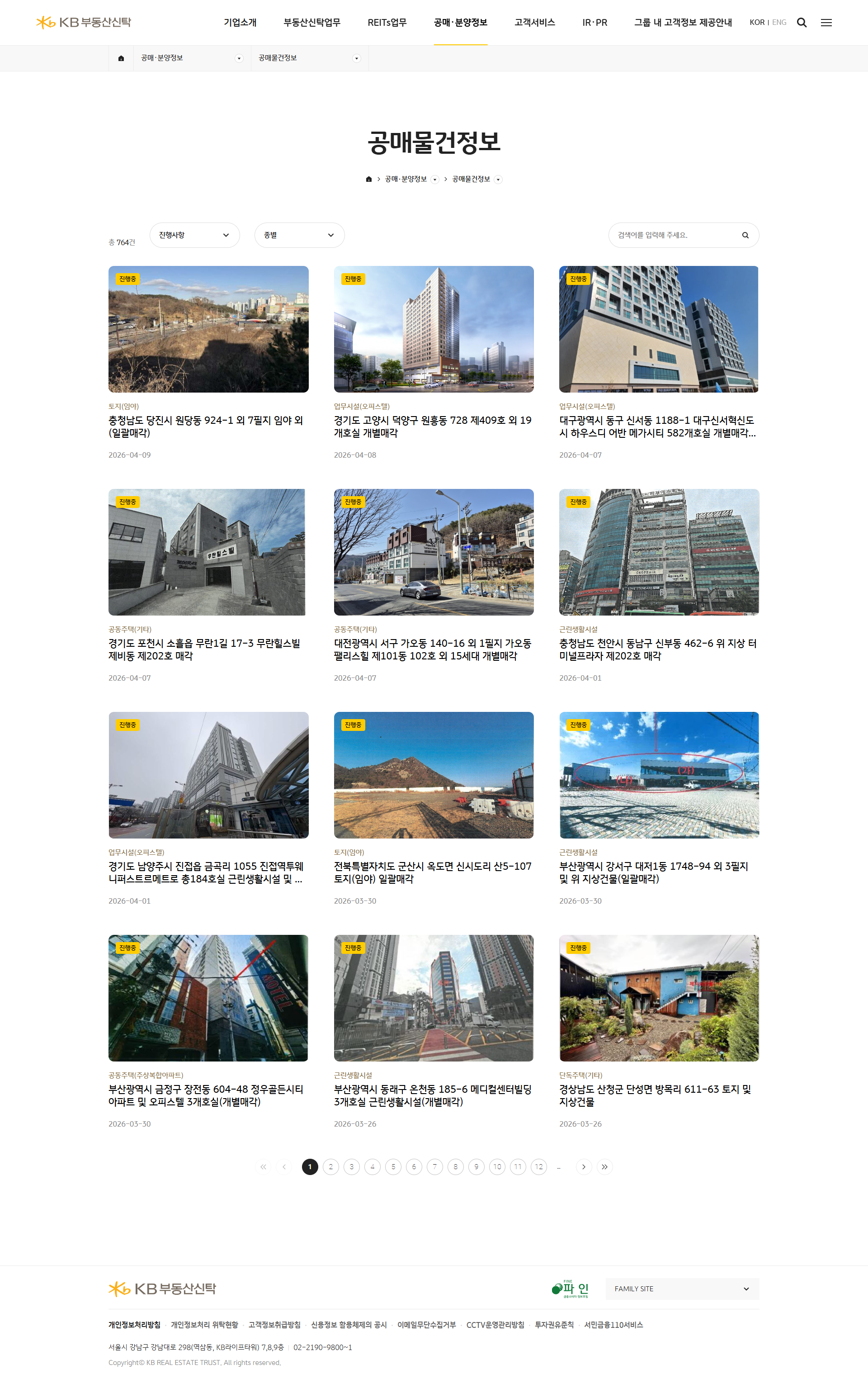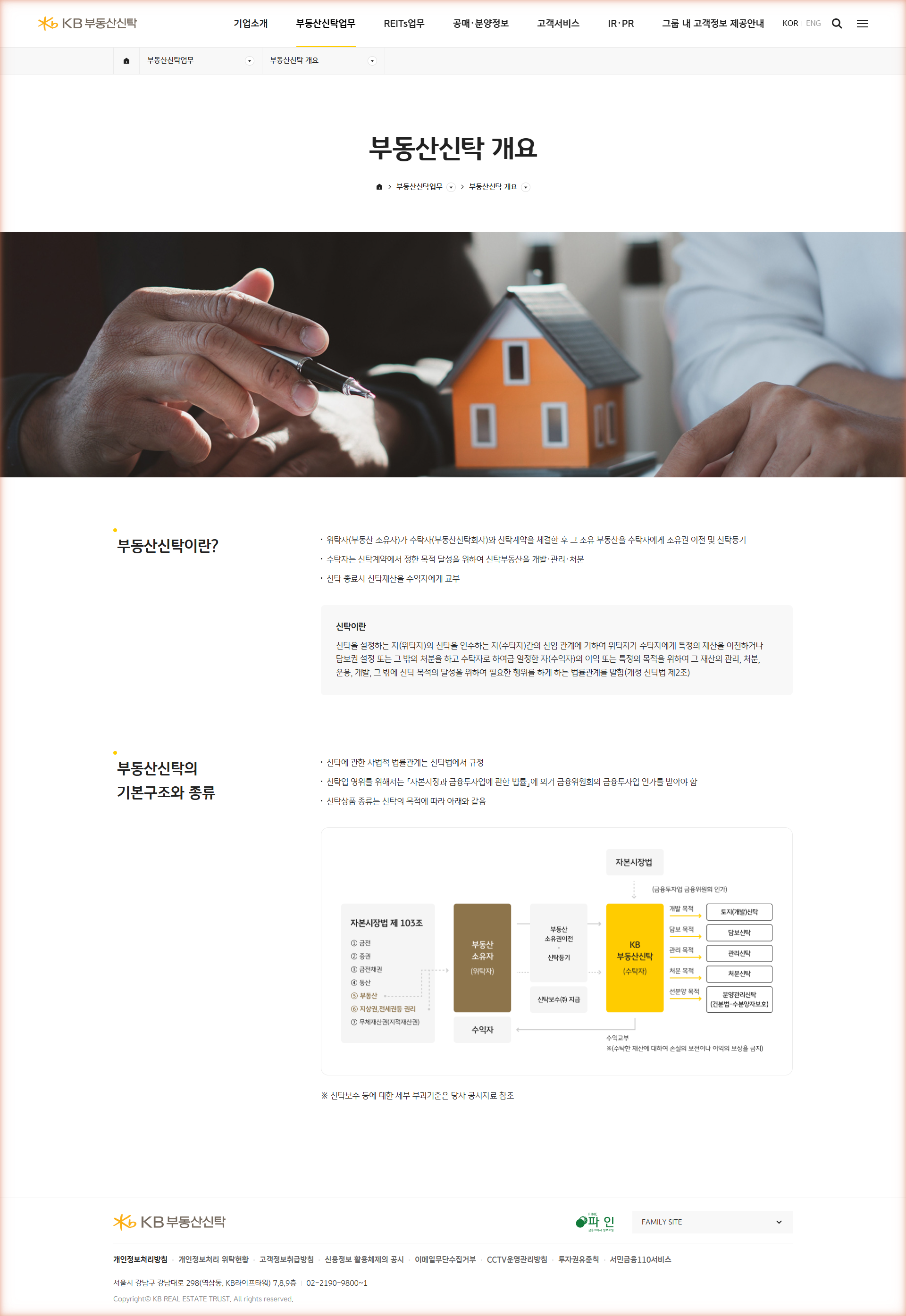 현대적 홈페이지를 통해 개인/기관 고객들이 다양한 부동산 신탁 상품, REIT 투자 정보, 공매물건 정보 등을 쉽게 접근할 수 있도록 설계되었습니다.