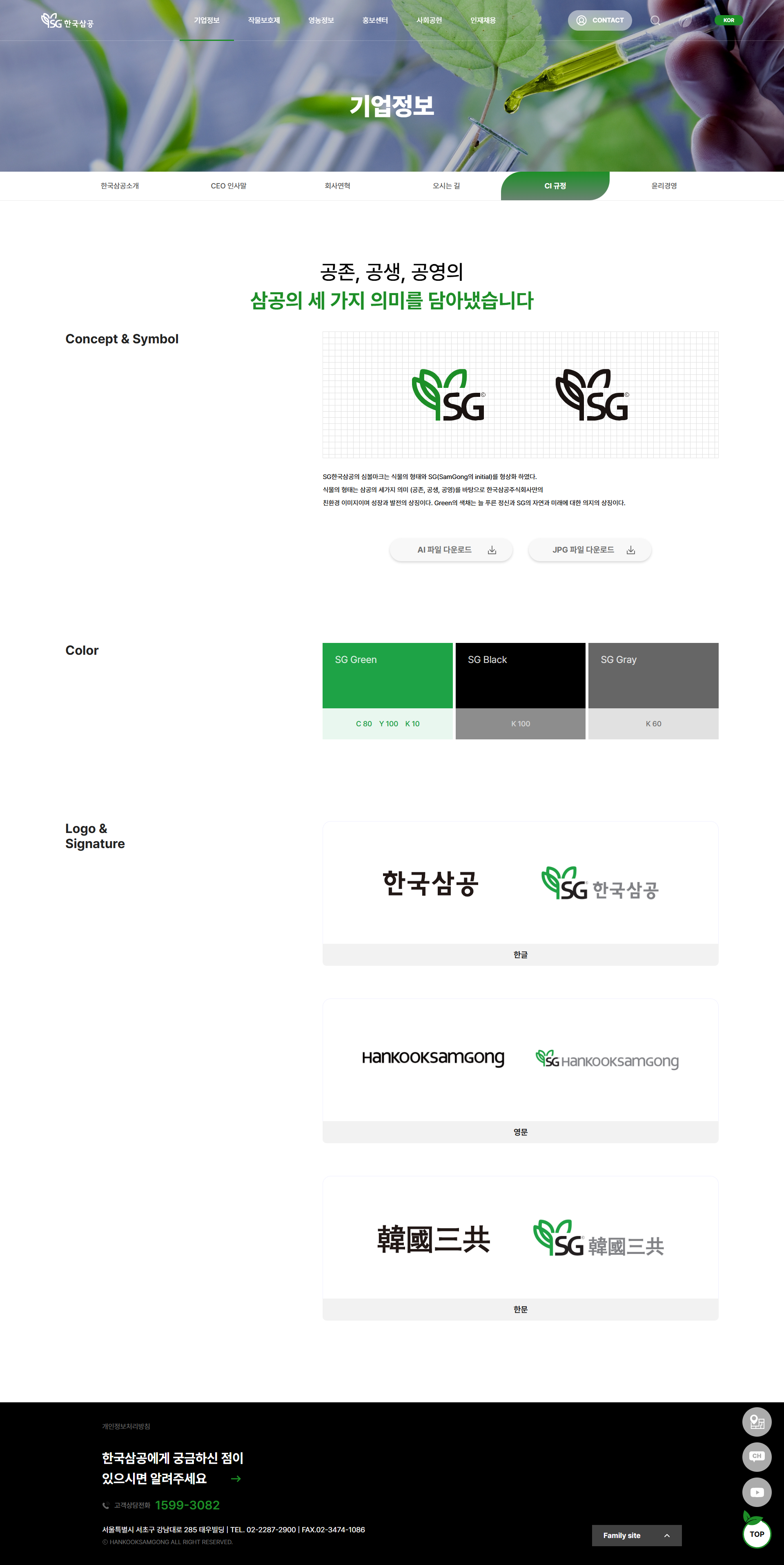 한국삼공은 작물보호제(농약) 제조 및 판매를 주요 사업으로 하는 기업으로, "생명에 뿌리다 농업의 뿌리다"는 슬로건 하에 한국 농업 발전을 지원합니다.
