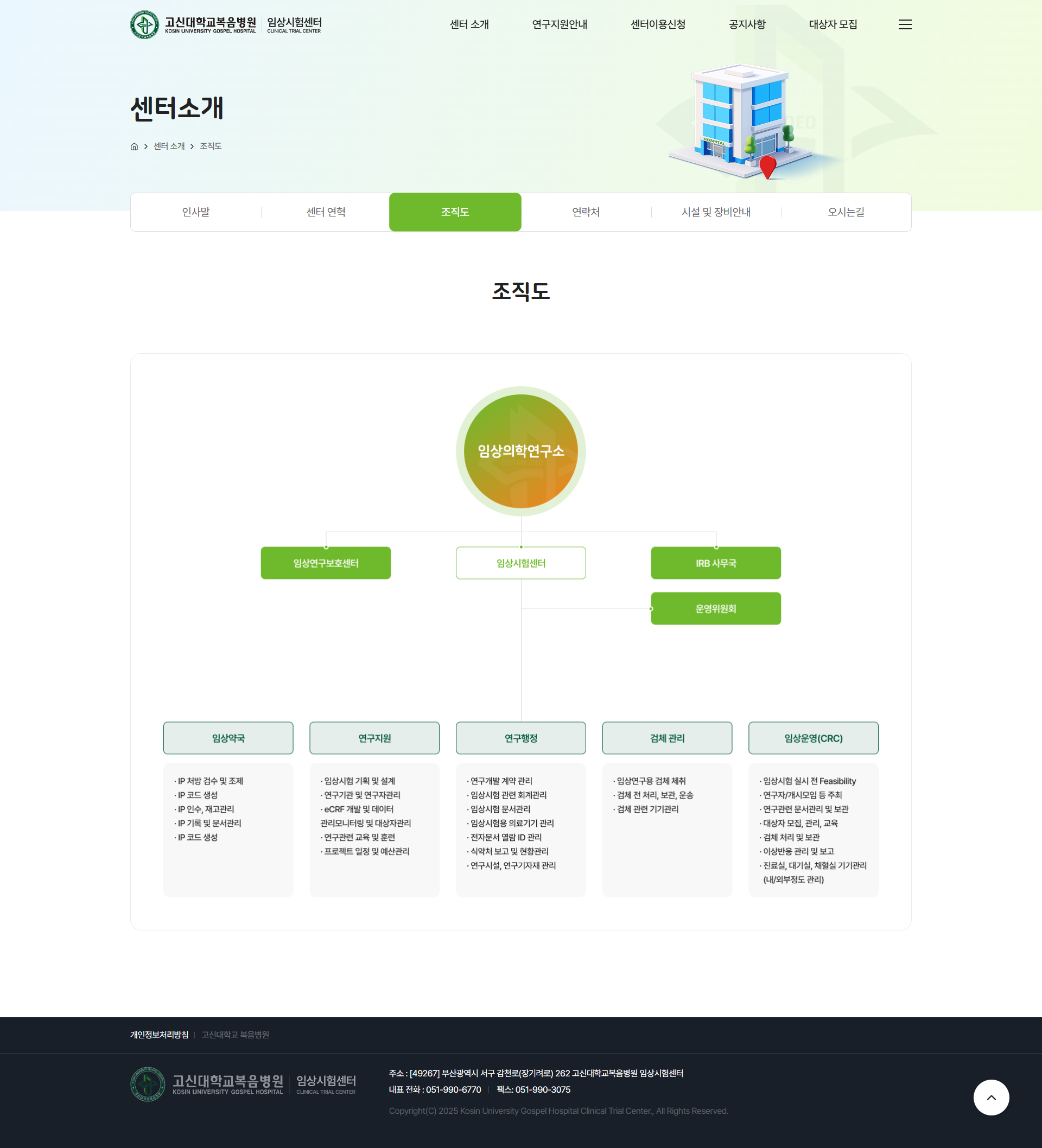 복잡한 행정 시스템보다는 사용자가 직관적으로 센터의 조직과 인프라를 이해하고, 현재 진행 중인 임상시험 공고에 쉽게 접근할 수 있도록 설계되었습니다.