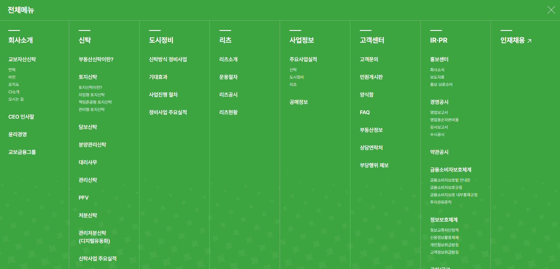 신탁·도시정비·리츠 3대 사업과 경영공시·양식함·IR자료를 통합 관리하는 교보금융그룹 계열 부동산신탁 기업 홈페이지 구축