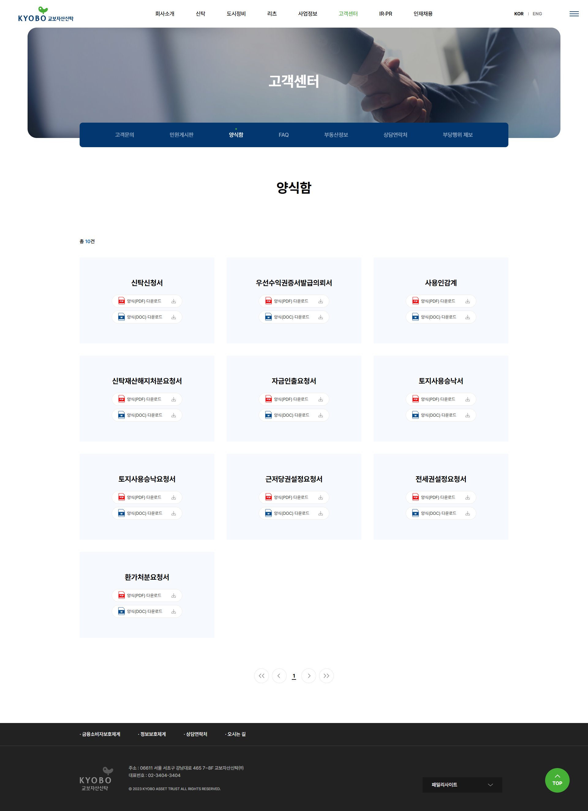 양식함 섹션에 각 서류의 DOC·PDF 버전을 병렬로 제공하여 고객이 원하는 형식의 양식을 즉시 다운로드할 수 있도록 하여 신탁 업무 처리 편의성을 높였습니다. -