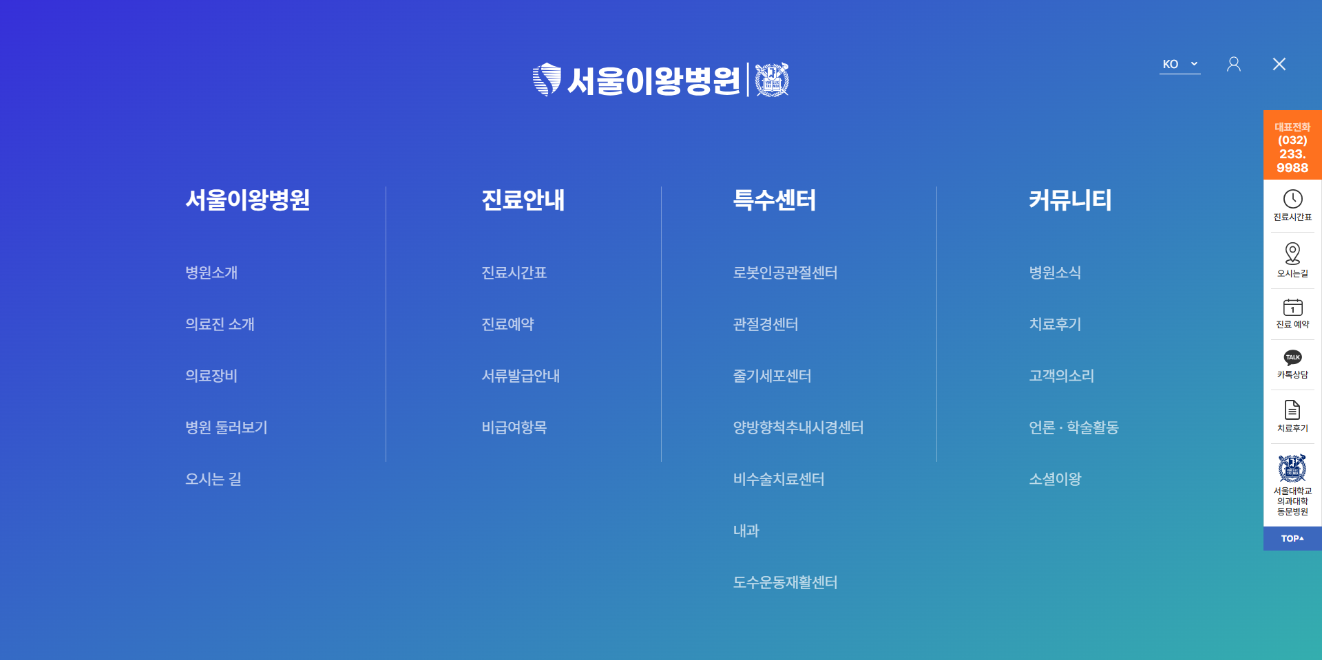 로봇인공관절·양방향척추내시경 등 7개 특수센터 전용 메뉴 구조