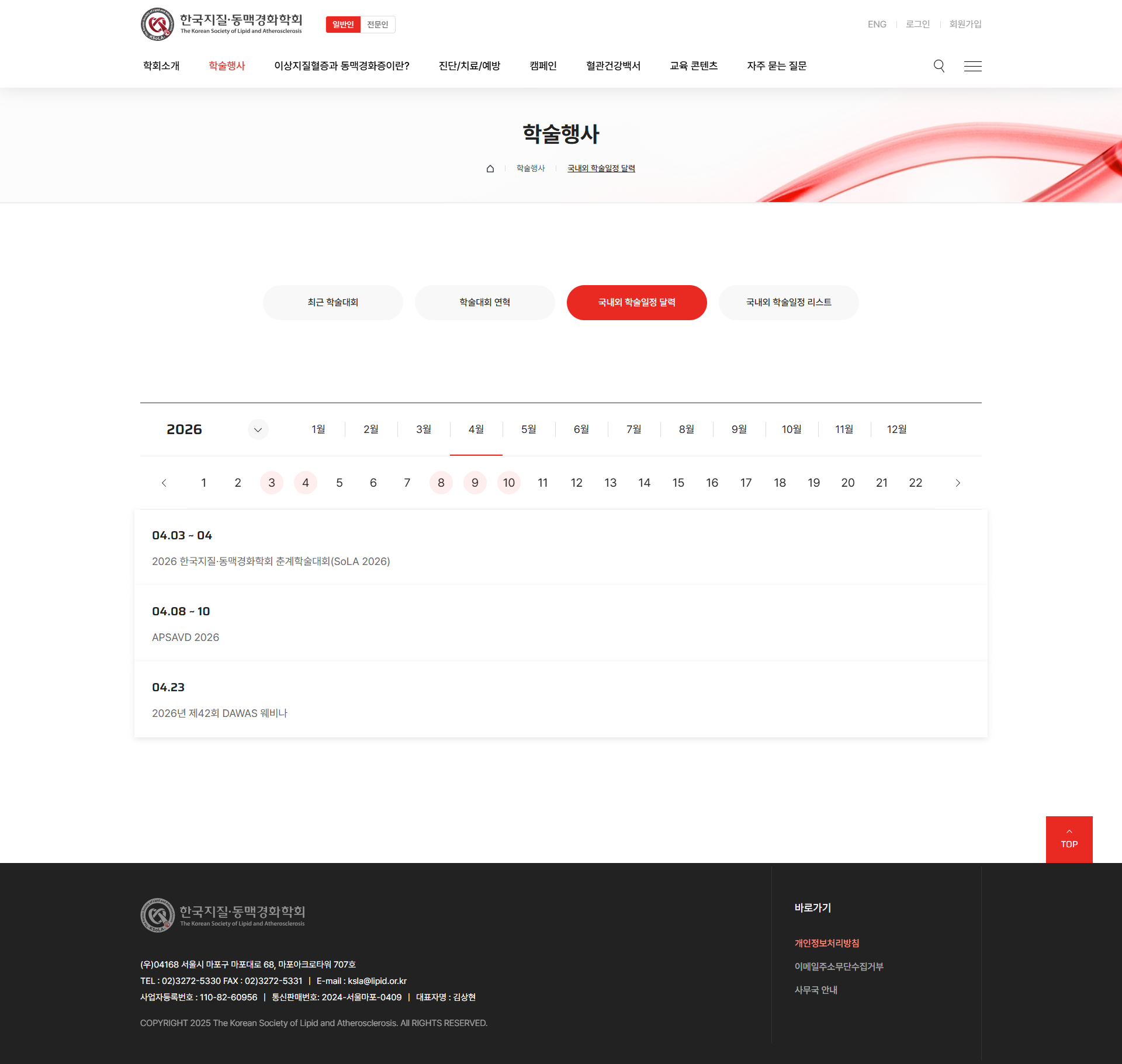 일반인·전문인 탭 분기 이중 포털과 LDL 계산기·진료지침·학술일정 캘린더·교육 콘텐츠를 통합한 한국지질·동맥경화학회 홈페이지 구축