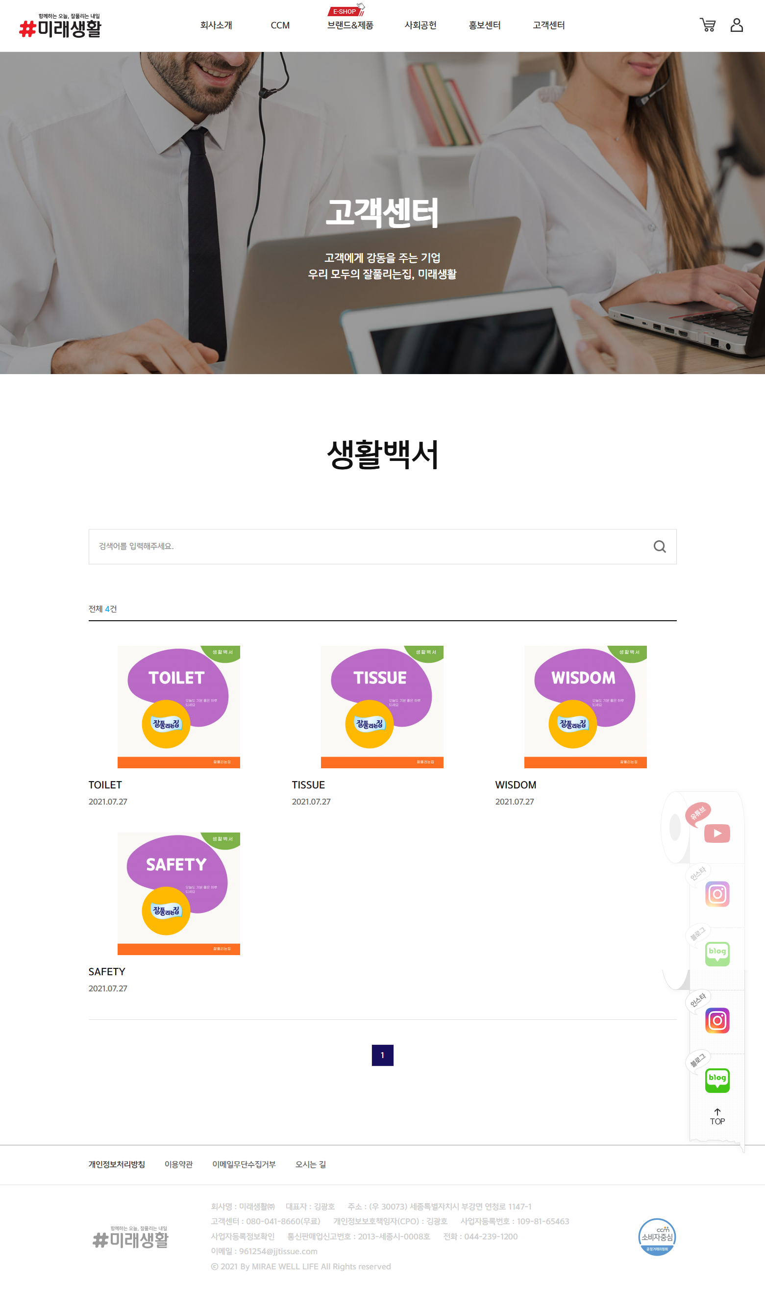 모두가 잘 풀리는 하루, 5개 브랜드 종합위생용품 제조사 미래생활 브랜드 쇼핑몰