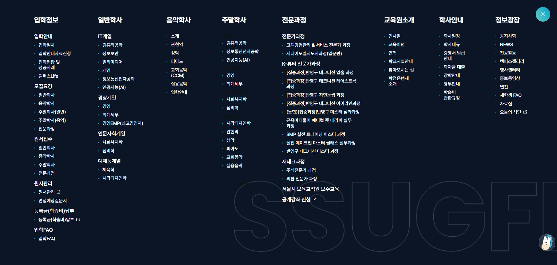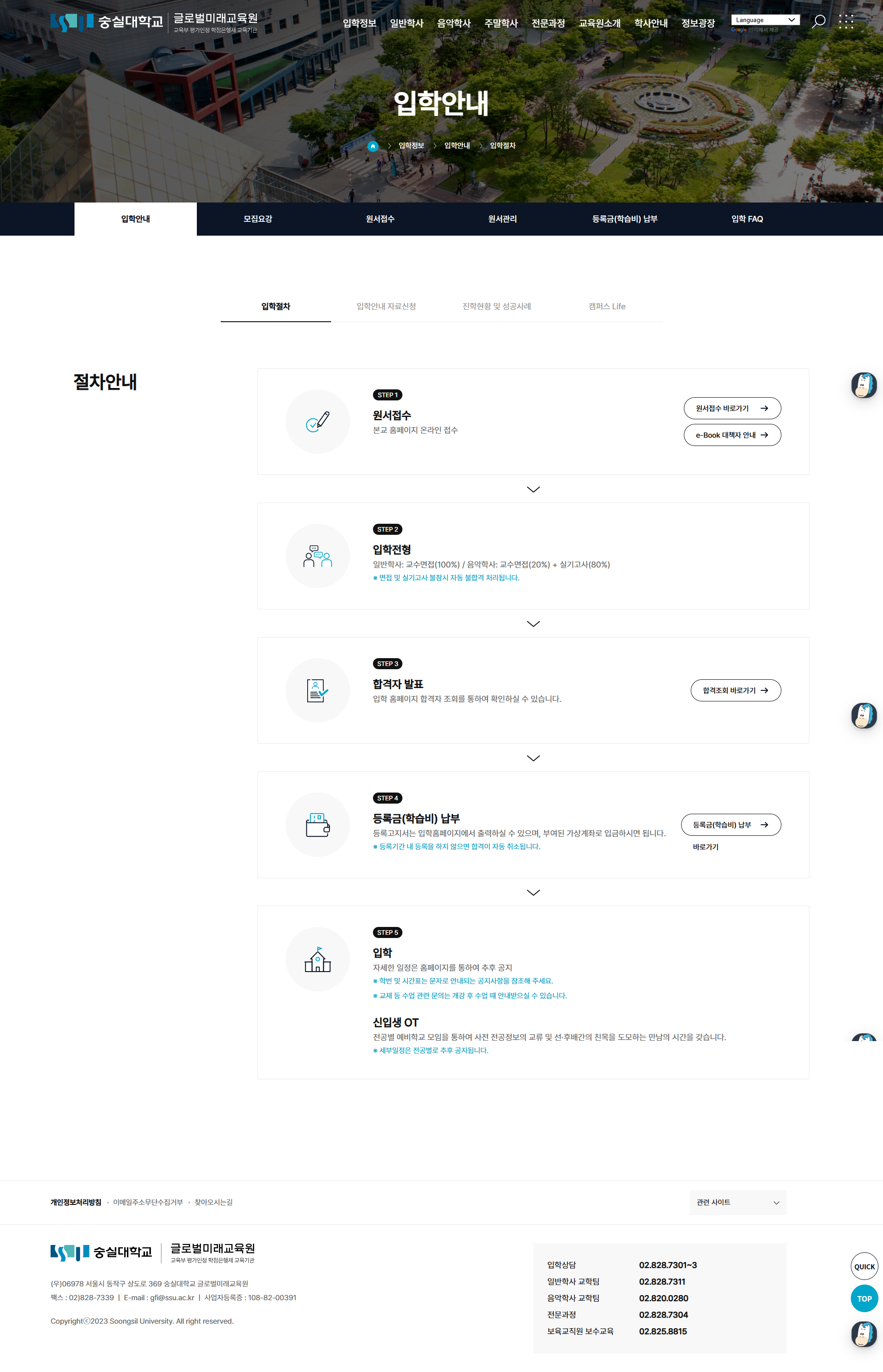 - 각 과정별 입학정보 및 교육과정 안내를 체계적으로 제공