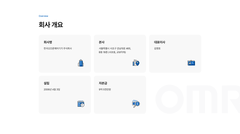 오므론은 자사의 핵심역량을 바탕으로, 생산성 향상을 추구하는 제조 현장을 지원합니다. FA(Factory Automation)용 콘트롤러에서부터, 센서, 스위치, 릴레이, 세이프티 기기까지 무려 10만 종이 넘는 다양한 사양의 제품을 제공하며, 산업현장에서 요구되는 고품질과 안전성에 대한 기대에 걸맞는 서비스를 제공하고 있습니다.