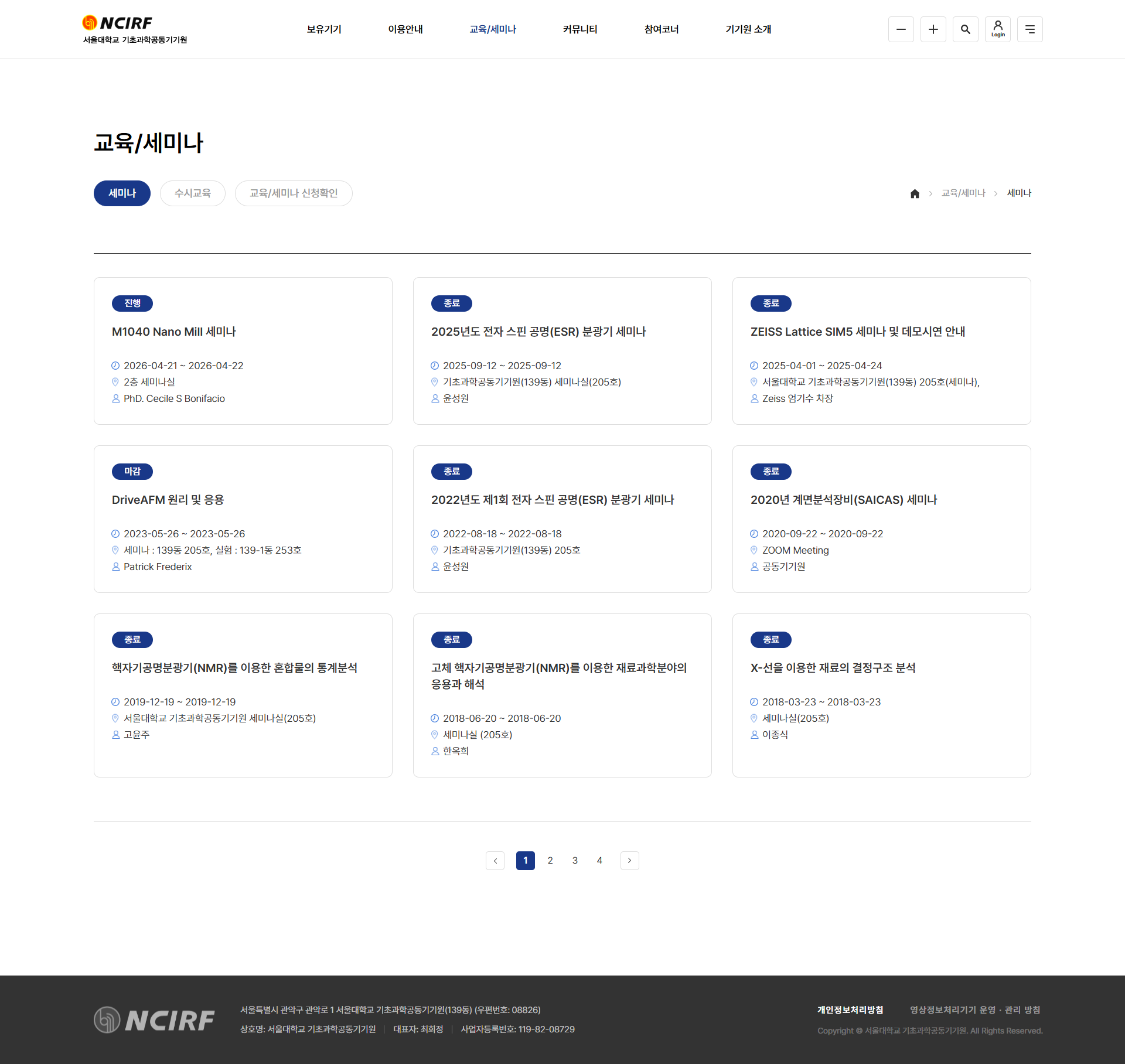 - 정기 세미나 및 수시 교육 프로그램 운영 (장비 활용 교육)