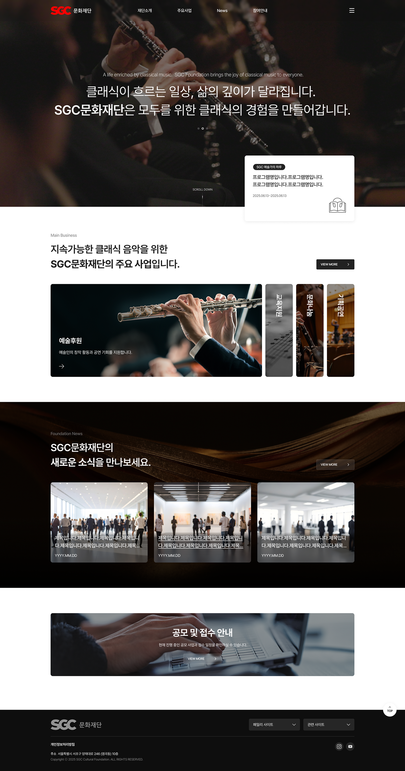 사용자가 재단의 역할과 의미를 자연스럽게 이해할 수 있도록 설계했습니다.