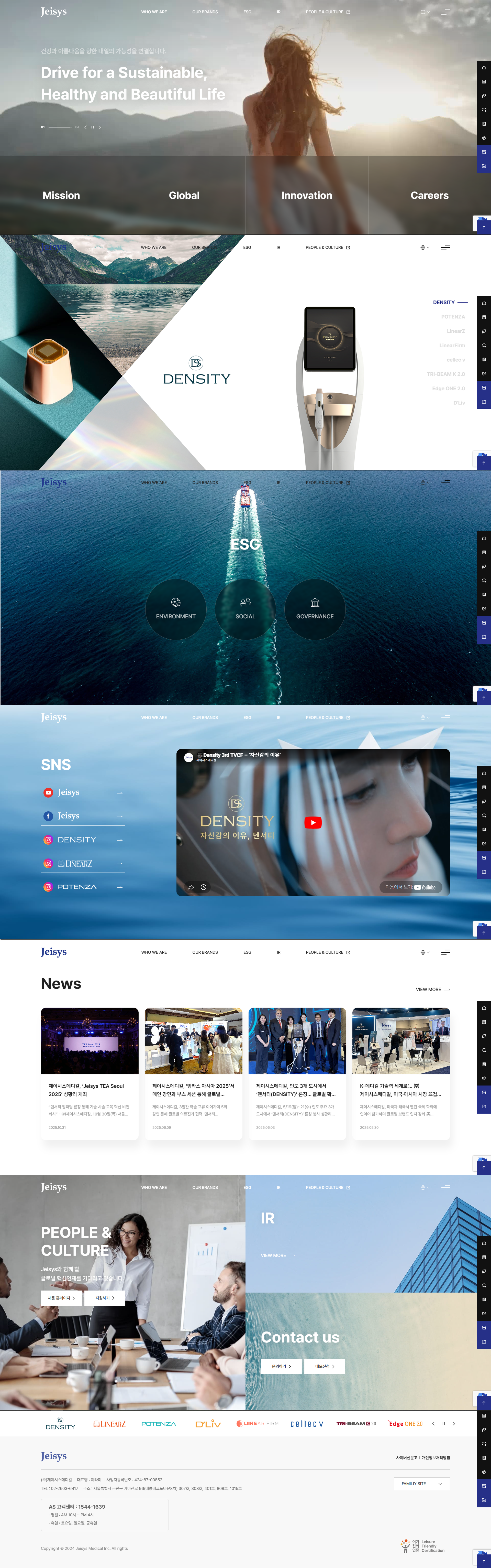 8개 브랜드(DENSITY, POTENZA, LinearZ, LinearFirm, cellec v, TRI-BEAM K 2.0, Edge ONE 2.0, D'Liv)를 효과적으로 관리하기 위해 메인 포탈에서 각 브랜드를 명확히 분류하고, 각 브랜드별 독립 웹사이트를 구축하여 의료기관과 소비자가 각자의 니즈에 맞는 정보에 접근 가능하도록 설계했습니다.