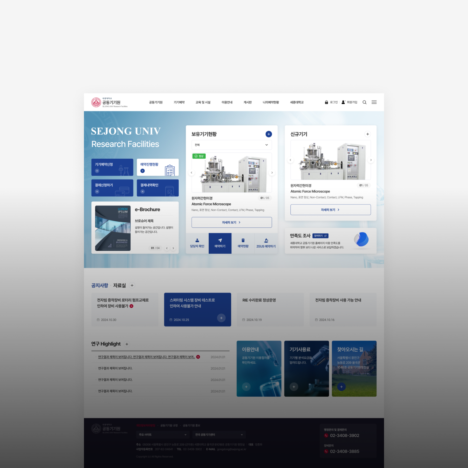 세종대학교 공동기기원 웹사이트 리뉴얼