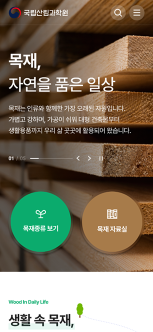 국립산림과학원의 방대한 연구 데이터와 전문성을 효과적으로 전달하기 위해, 산림을 상징하는 내추럴 톤의 컬러 팔레트를 활용하여 기관의 정체성과 자연의 조화로움을 시각화했습니다.