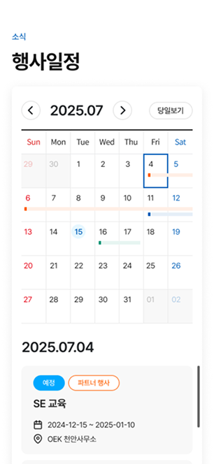 정보 전달이 중요한 기능적 페이지의 특성을 고려하여, 화이트 컬러와 신뢰감을 주는 CI컬러인 블루 포인트를 전략적으로 매치했습니다. 사용자 경험(UX)을 최우선으로 설계하여 복잡한 조작 없이도 누구나 쉽게 기능을 활용할 수 있도록 디자인의 접근성과 편의성을 극대화했습니다.