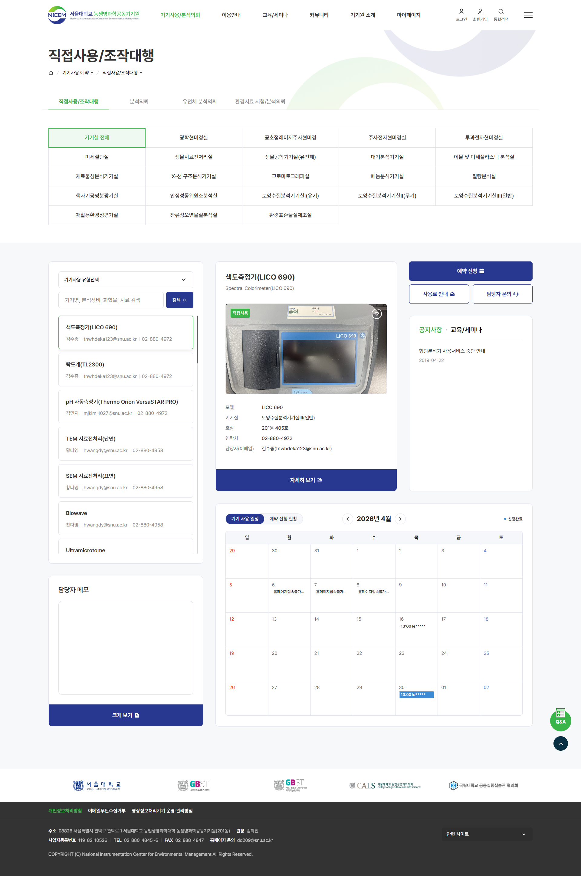 서울대학교 농생명과학공동기기원 리뉴얼