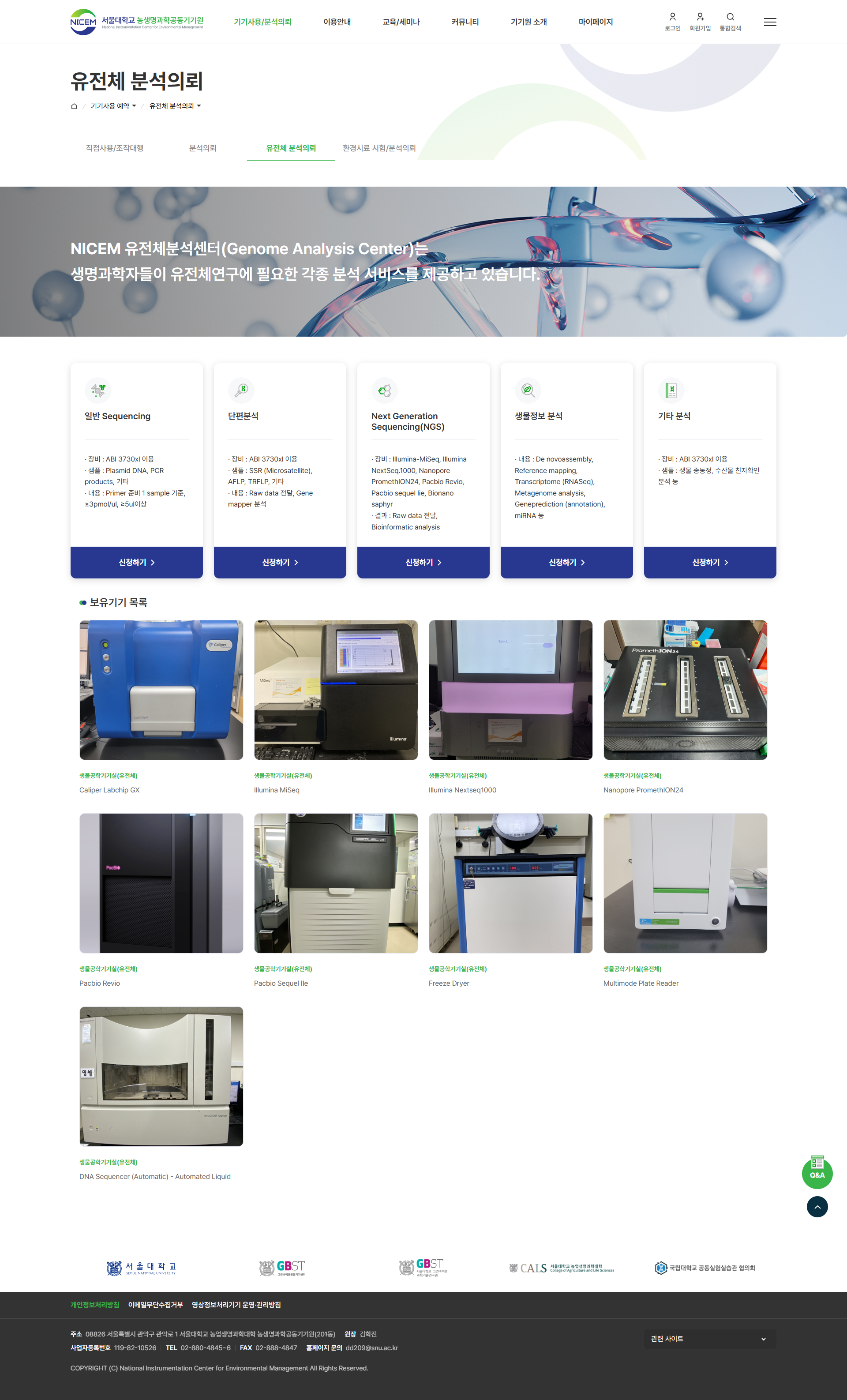 - 유전체분석센터: 차세대 염기서열분석(NGS), PacBio 등 최신 장비 운영
