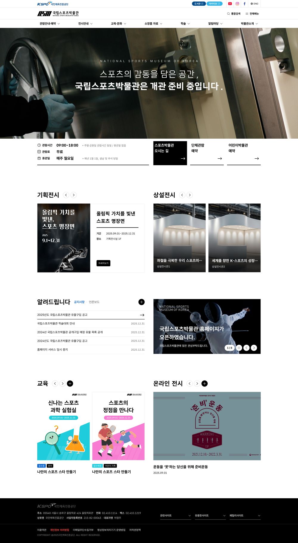 국립스포츠박물관 개관 전, 홈페이지 구축 필요